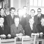 zittend v.l.n.r. : niet gekend, Roger Descamps (later directeur), Albert Martens, Daan Inghelram, dir. V. De Maesschalk, René Vermeersch, Raymond Leroy, niet gekend, Carl Lescrauwaet