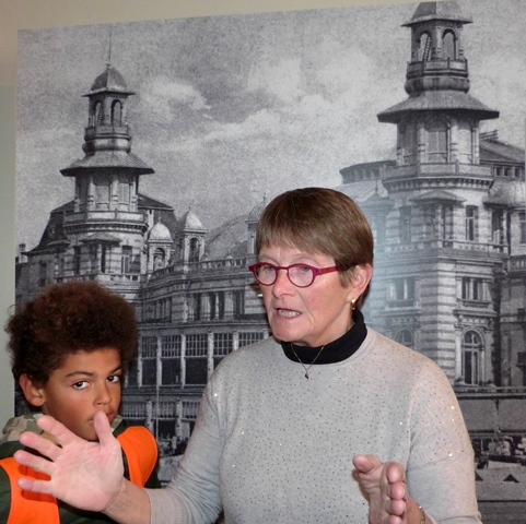 Een heerlijke les Blankenbergse geschiedenis konden de leerlingen beleven in het Belle Epoque-centrum in de Elisabethstraat. Over de tijd toen Blankenberge een vissersdorpje was achter de duinen, over de periode toen Blankenberge ‘ontplofte’, badplaats werd en kuuroord…in de 19de eeuw, na 1865 – de komst van de trein in Blankenberge – waar rijke lieden kwamen kuren en voorname huizen (villa’s) bouwden. Vooral veel vernamen ze over de tijd van de belle époque (1870-1914), die ‘mooie tijd’ zonder oorlog ,met een heel nieuwe bouw- en interieurstijl. De leerlingen kennen nu die vier ‘moeilijke’ Franse woorden BELLE EPOQUE en ART NOUVEAU.