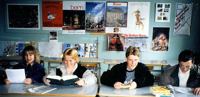 Toen was wel heel duidelijk geworden dat de Muur open was en we – Axel Lynen, Catherine Lambin, Kenneth Dehenauw en leraar Jaak Coudeville –