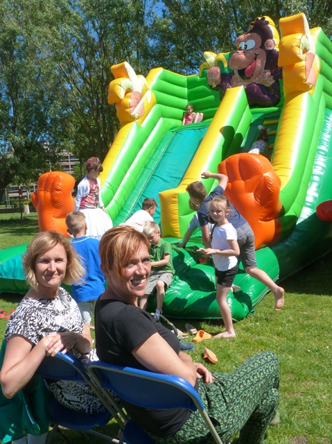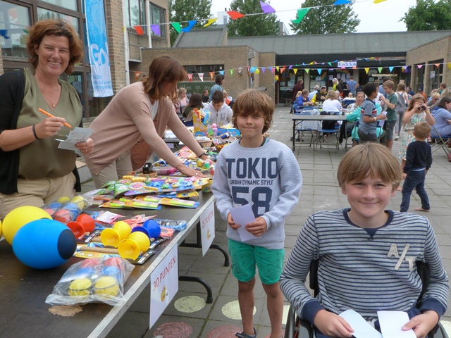De zon was er, de lekkere koffie, de gebakjes en drankjes. Een schoolterrein vol met ouders, grootouders en kinderen, die een aangename middag doorbrachten.