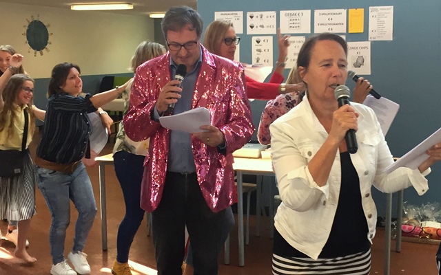 De leerlingen, ouders en leerkrachten zongen uit volle borst mee!