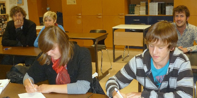 In het bureau van de directeur smulden zij van het lekkere oosters maal dat Jürgen Balbaert had gekookt, in het bijzonder voor Arnold Bekaert: zittend: Patrick Van Calenbergh, Arnold Bekaert, Patrick Caestecker, staand: Jaak Coudeville, Frits Standaert, Dirk Tytgat, Christiane Helders, en Jürgen Balbaert