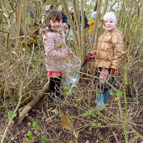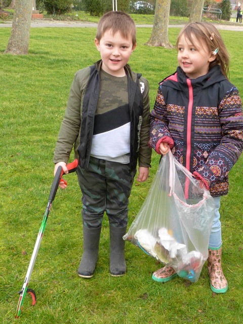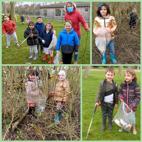 We zagen gisteren hoe de kinderen van de 3de kleuterklas (juf Anniek Lebacq) op het schooldomein intensief en goed geoutilleerd bezig waren met het opruimen van afval op het gras en in het struikgewas
