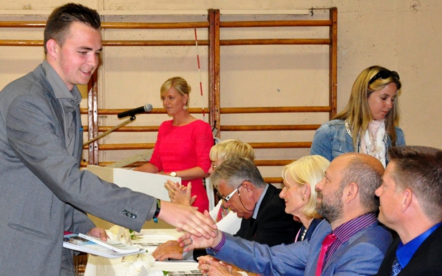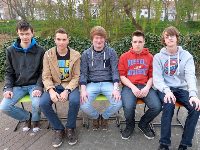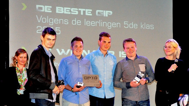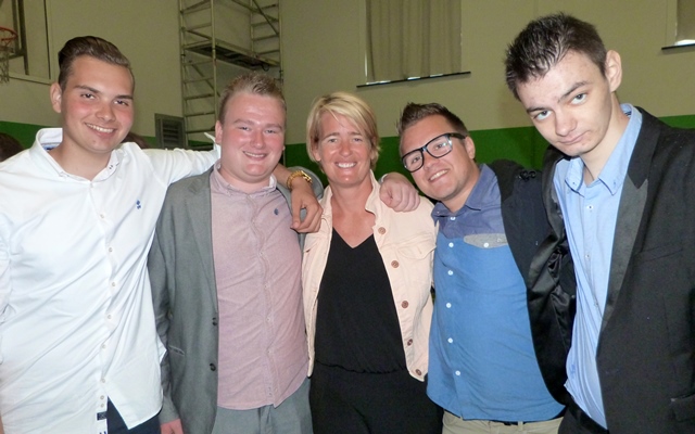 Directeur Jürgen Balbaert, zijn zoon Johannes, TAC Johan Rotsaert, de leraren Ivan Peetermans en Wim Broes en de leerlingen van 5MO, 6MO en 7 NLJ woonden (apetrots) de prijsuitreiking bij.
