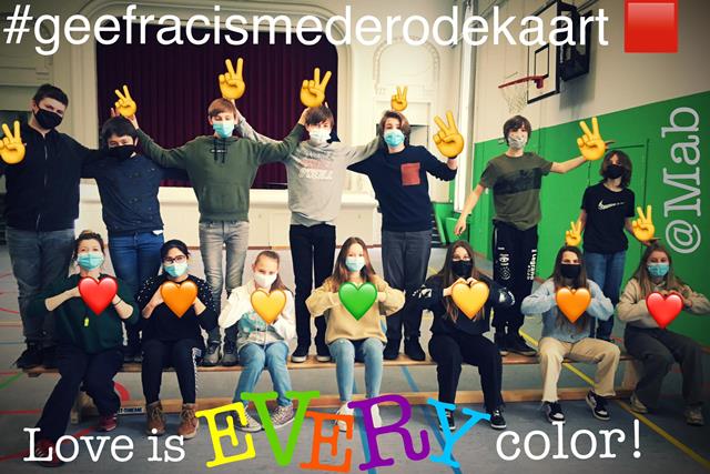 Lerares n.c. zedenleer Patty Puystjens meldt me: We zijn deze week begonnen met het project ‘GEEF RACISME DE RODE KAART’ in de lessen levenbeschouwing en LO van het tweede middelbaar. Dit project is in samenwerking met Club Brugge.