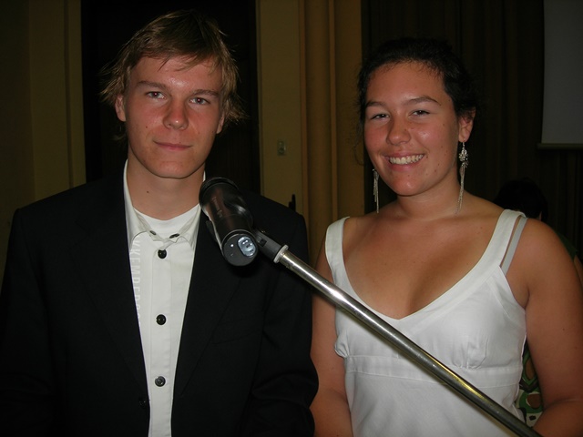 zijn zoon Maxime, speechend op de proclamatie 2009 met Dominique Clybouw, dochter van lerares Marita Bloemen