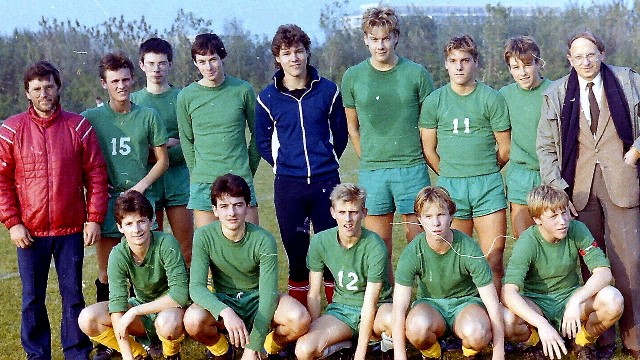 voetbalploeg school 1986 met zittend 2de v.r. zijn zoon Christiaan Deprez
