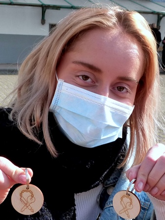 Slechts €4 voor een handgemaakte sleutelhanger met ons logo!”