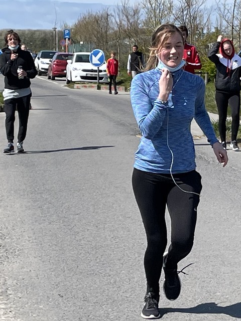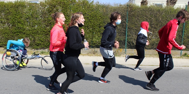 ‘ s Middags rolde hij nog eens mee met de medeleerlingen op hun 2km met een tijd van 10 min 07.