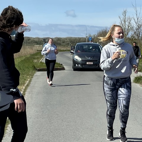 De tijd wordt opgenomen door de leerkrachten. Nadat jullie gezwommen hebben, kleden jullie zich om en vertrekken jullie (max in groepjes van 4) naar het centrale punt om te fietsen en te lopen. De omkleed- en verplaatsingstijd wordt niet opgenomen. De organisatie houdt er geen rekening mee.