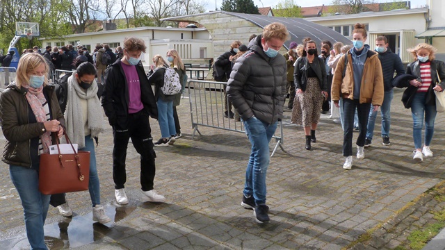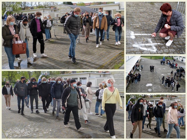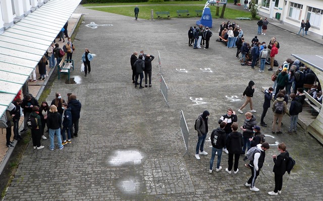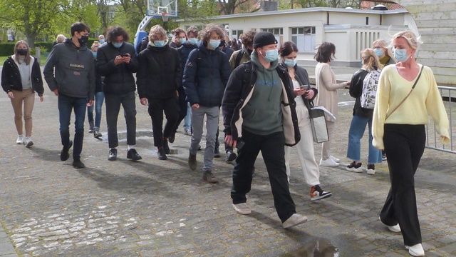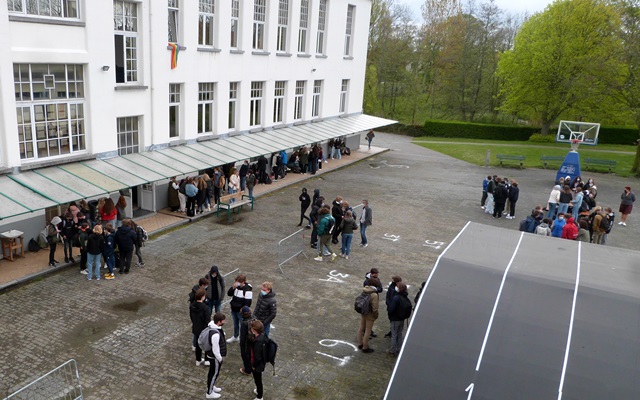 Ook bij het verlaten en betreden van het gebouw, voor en na elke pauze, proberen we de leerlingen te spreiden in de gangen en aan de deuren van het gebouw.