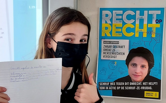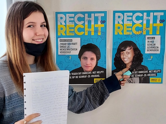 Op deze Schrijf-ze-VRIJdag kruipen leerlingen in de pen voor mensen die na een oneerlijk proces achter de tralies zijn beland. In de Schrijf-ze-VRIJ-gids vind je vier treffende verhalen en voorbeeldbrieven. De gids bevat ook een aanbod aan klasactiviteiten over mensenrechten en het recht op een eerlijk proces.