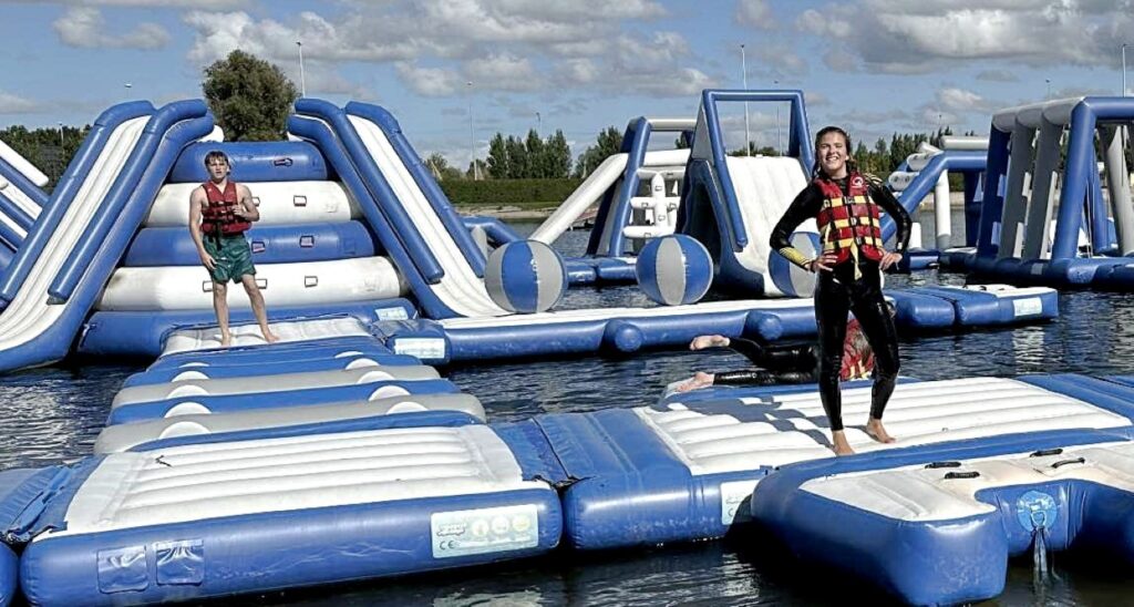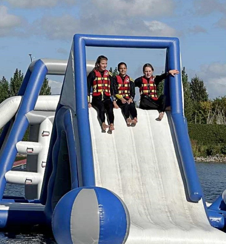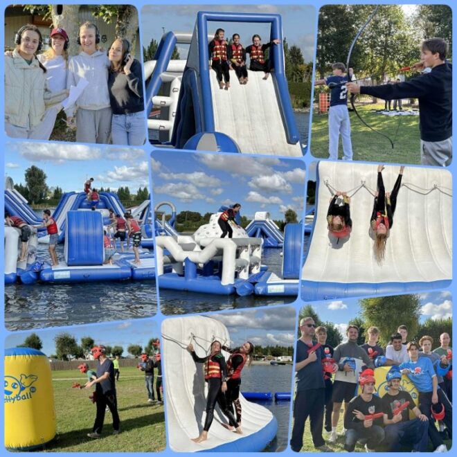 In het AQUAPARK deden de leerlingen in de voormiddag verschillende activiteiten op het droge: XXL games, Gelly ball en een silent disco tour. Na een lunchpauze in de prachtige zon op het terras van de beachbar mochten de leerlingen zich uitleven op het uitdagende aquapark en met SUPs het water op. Na een toffe dag fietsen ze terug richting Blankenberge.