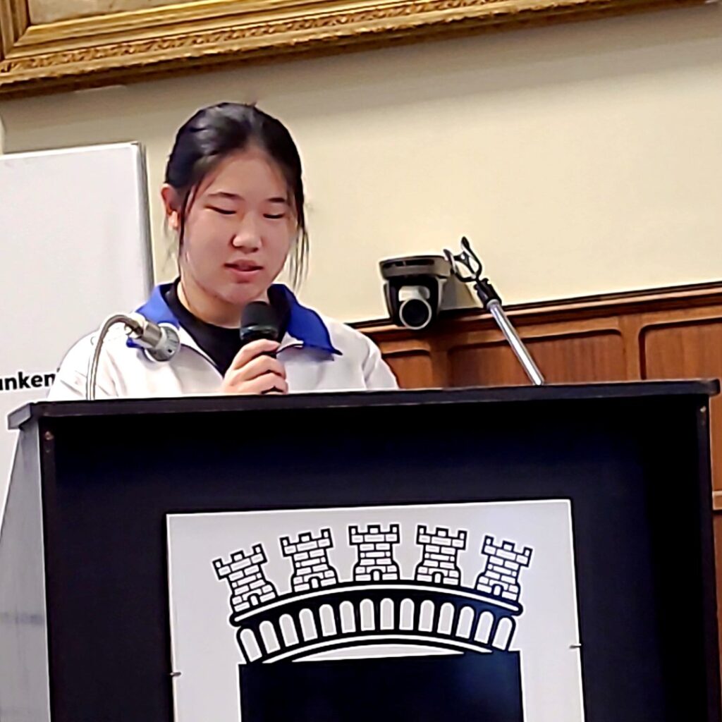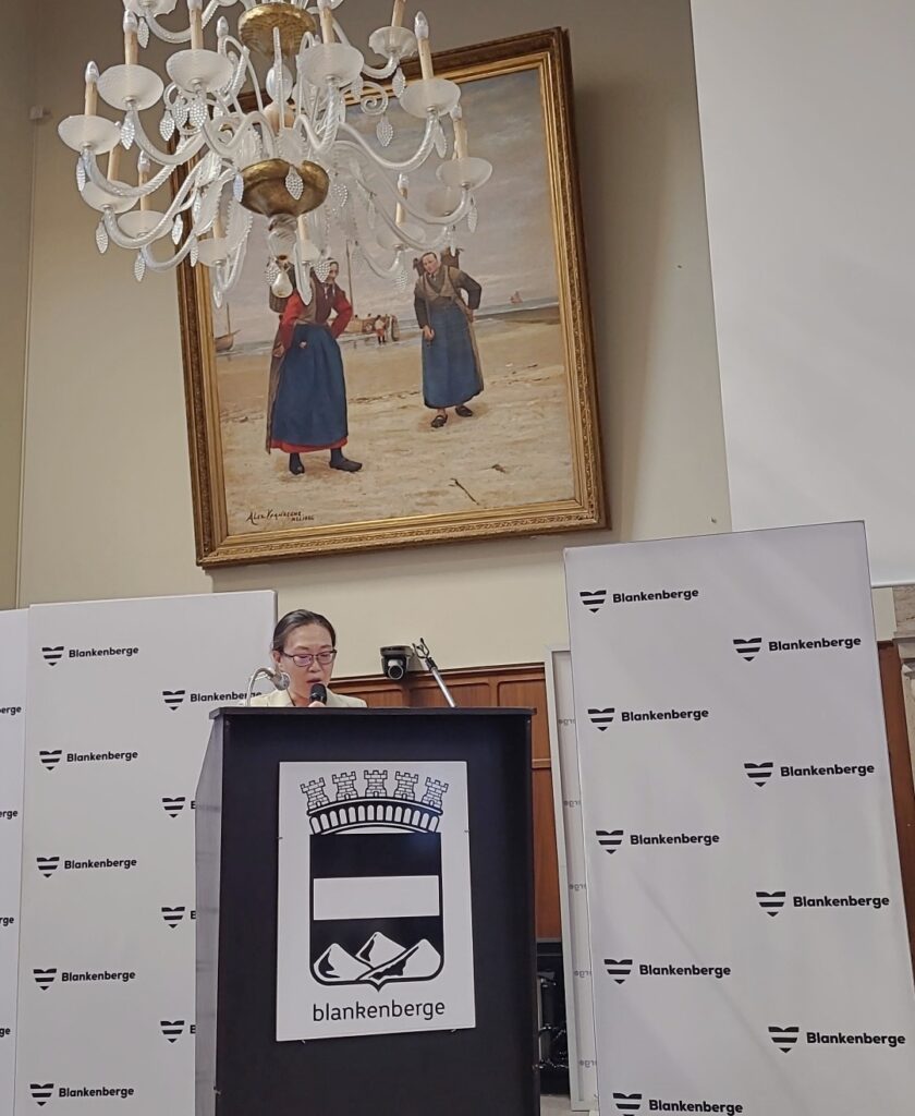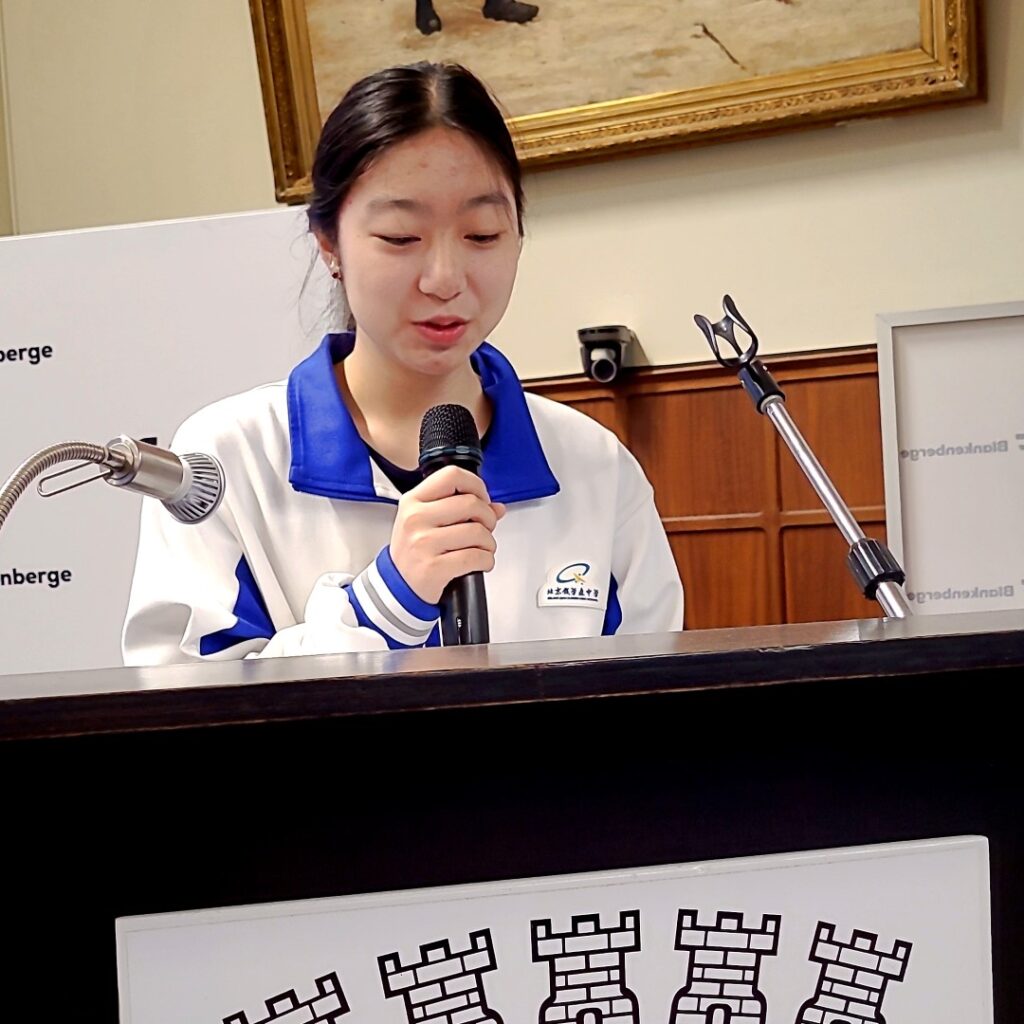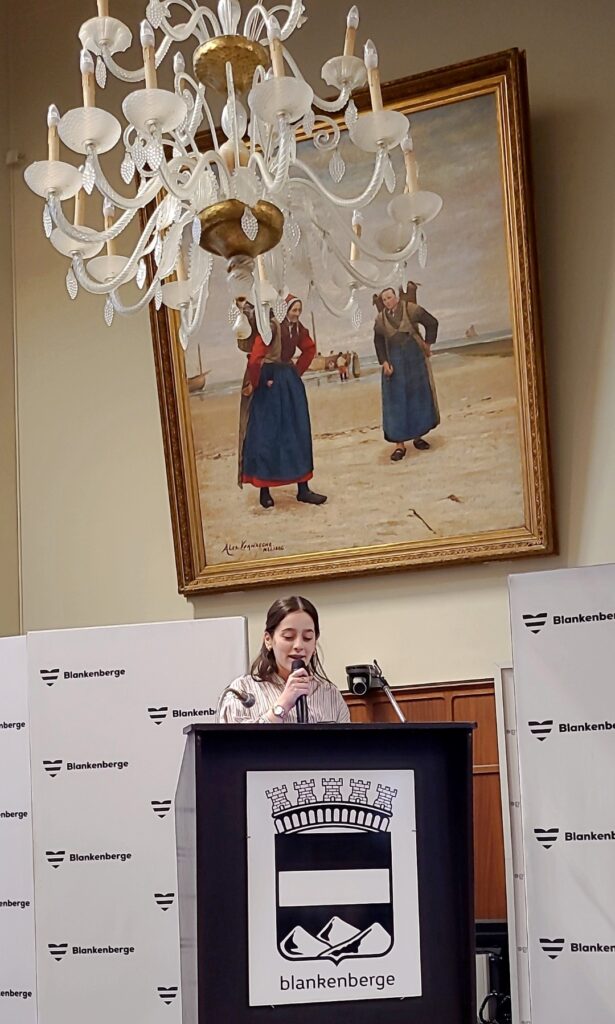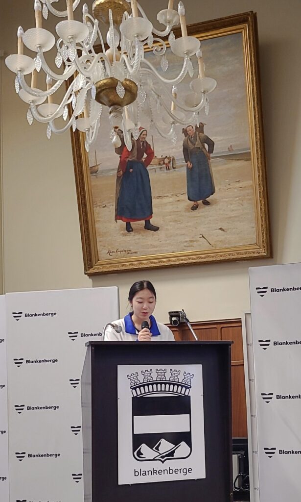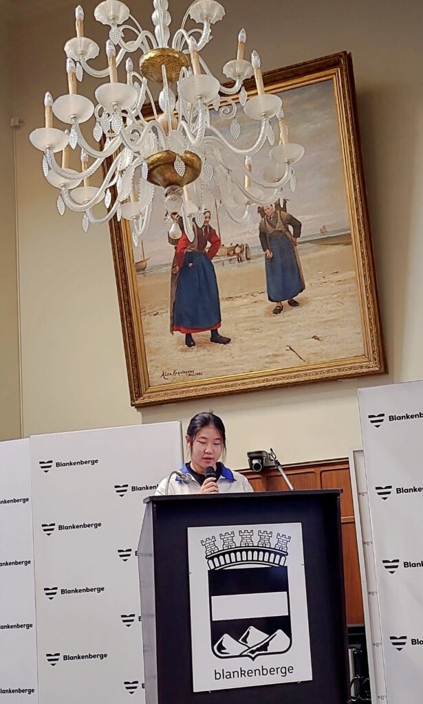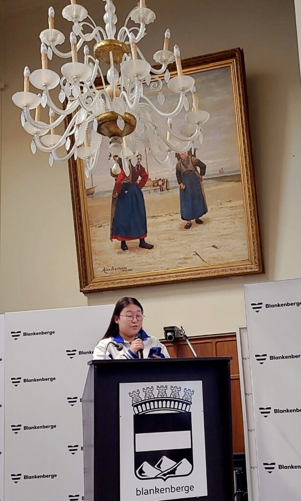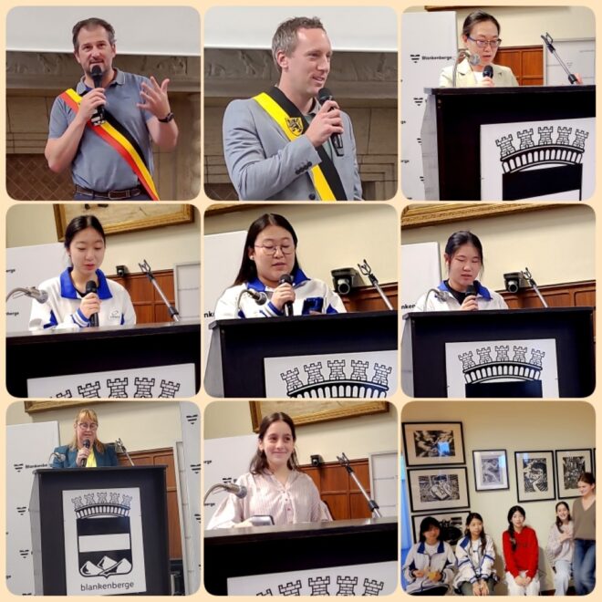 Toespraken van burgemeester Björn Prasse, onderwijsschepen Dennis Monte, een lerares van de BEIJING QIAN XUESEN HIGH SCHOOL, leerlingen van de Pekinese school, een ouder van een leerling van SJSP¨ én ELONA METAJ, die zoals alle anderen in het Engels haar toespraak hield. Aandoenlijk was het die te horen: