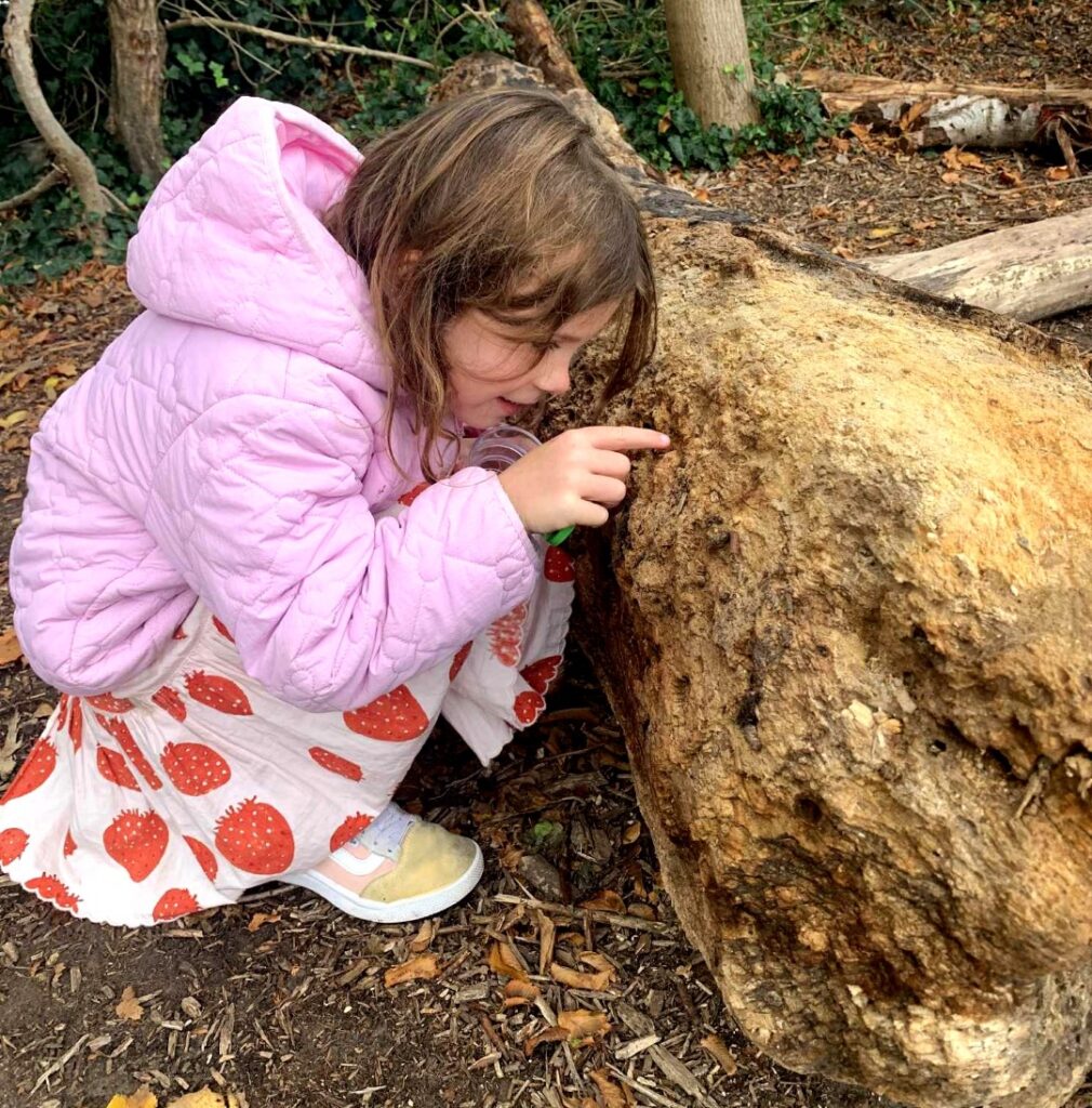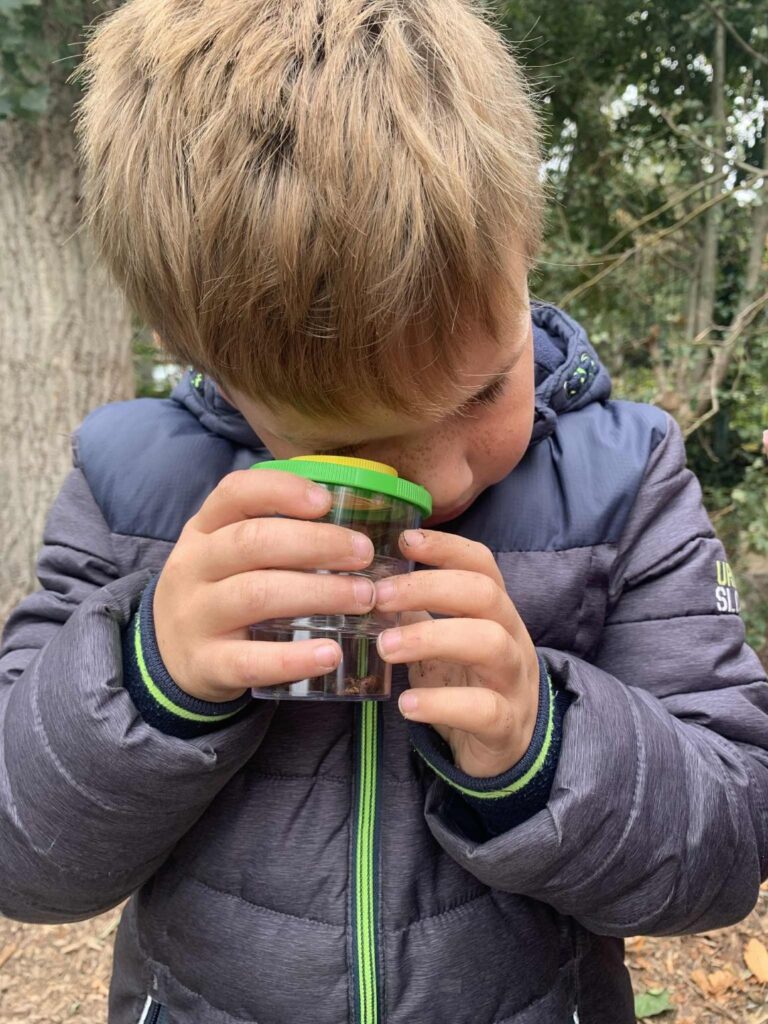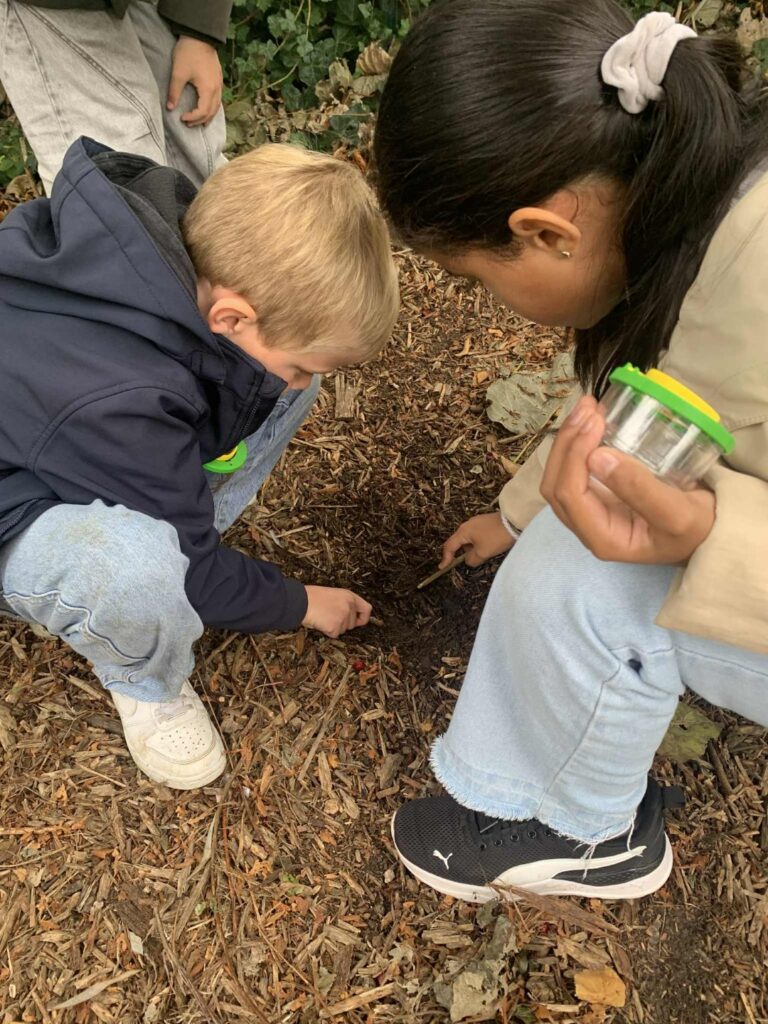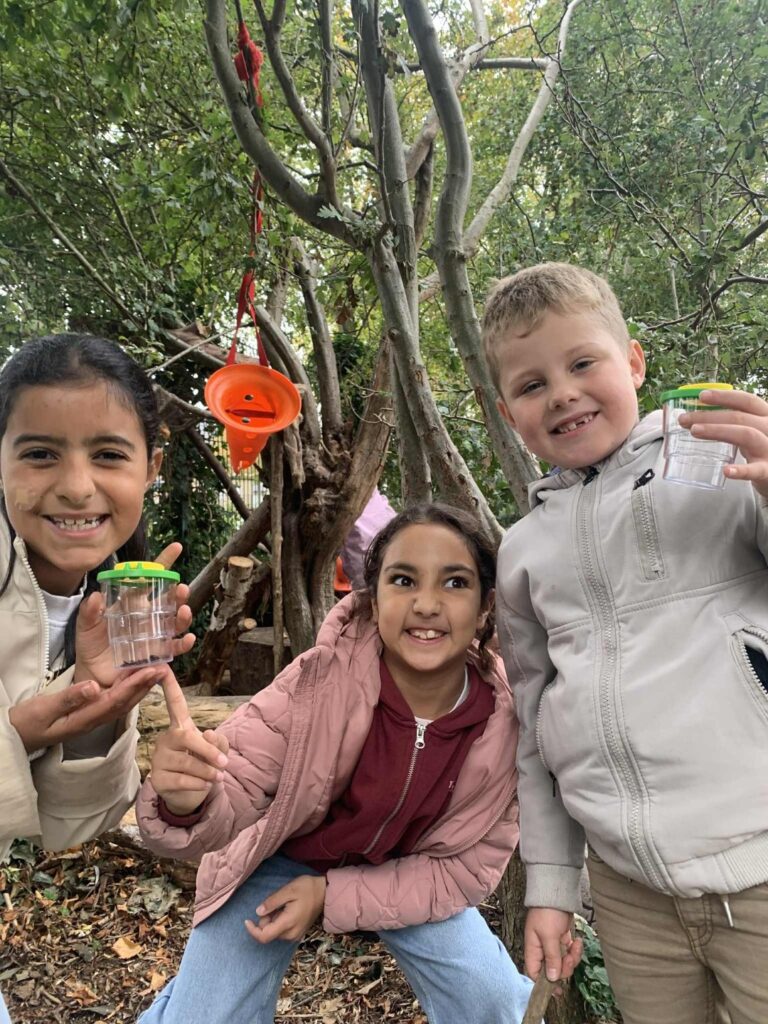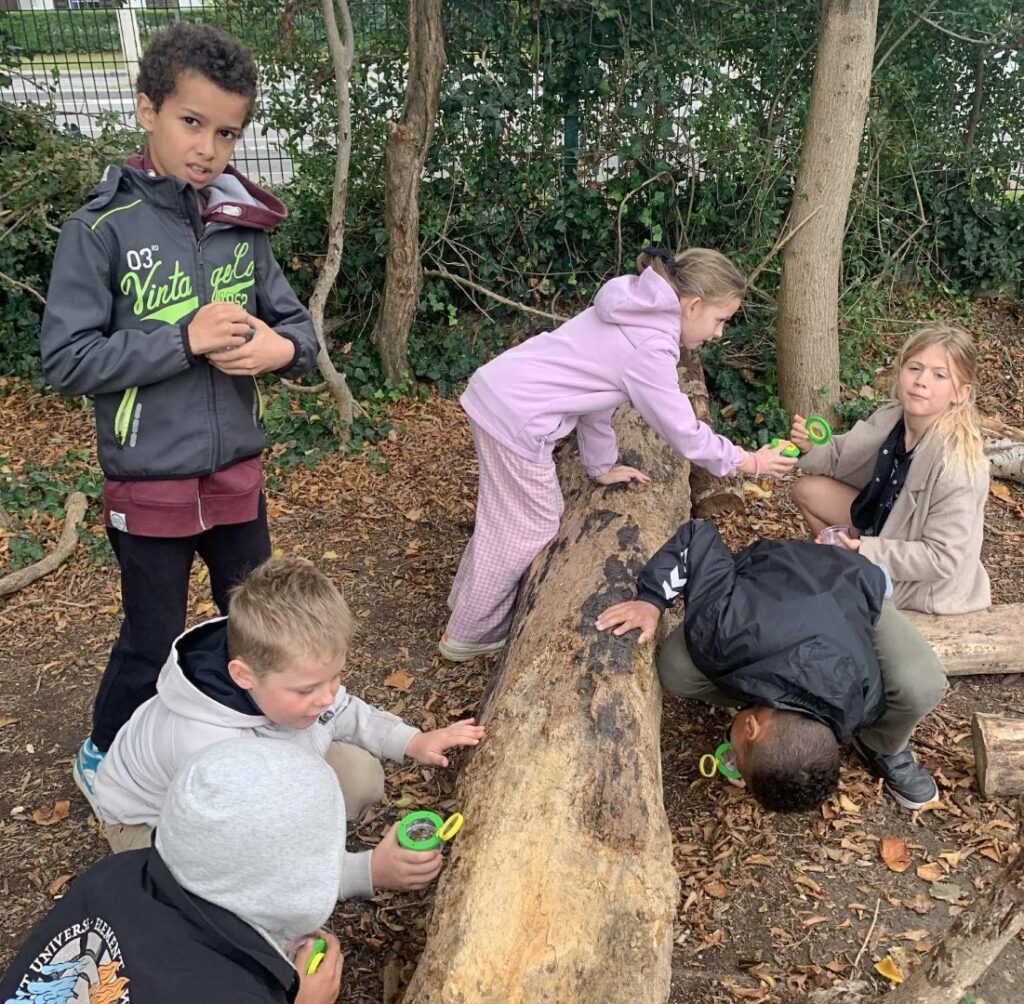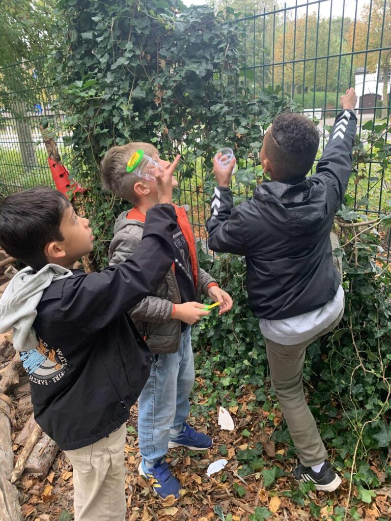 Met onze nieuwe loeppotjes onderzocht het derde leerjaar de omgeving van onze groene speelplaats.