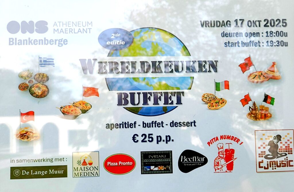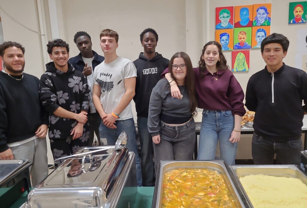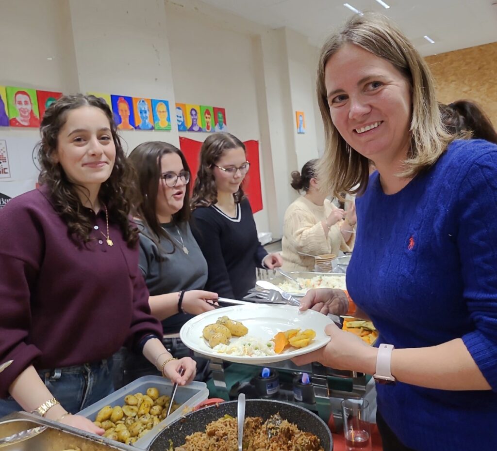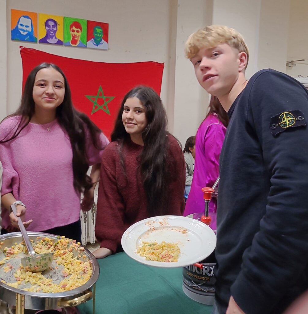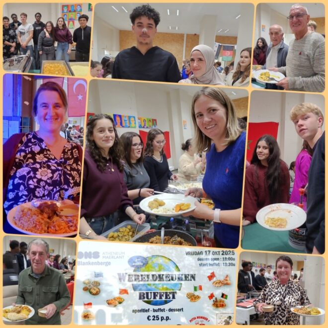 In het kader van de lessen wereldkeuken, diversiteit en armoedebestrijding organiseerde het MAERLANT-ATHENEUM op vrijdag 17 oktober 2024 een heuse culinaire avond op school. Een aantal leerlingen, leerkrachten en ouders sloegen de handen in elkaar om een uitgebreid buffet aan te bieden in het schoolrestaurant. De gerechten werden o.a. tijdens lessen klaargemaakt. ‘s Avonds kon men vanaf 19.30u aanschuiven om van deze heerlijke bereidingen te smullen: Griekse, Marokkaanse, Chinese, Italiaanse en Belgische lekkernijen. Voor het buffet begon trad de Gentse dansgroep Yellah 3 Dabke op.