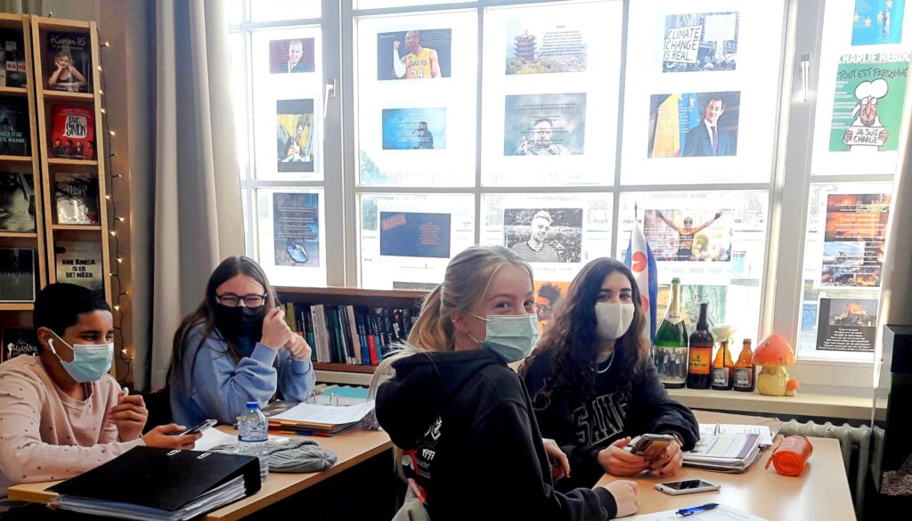 Leerlingen 3 des en 4des van het Maerlant-ath. schreven voor het vak Nederlands (Joost Coudeville) gedichten, geïnspireerd door een terugbliktekst op 2020 – hun poëzie hing uit in het klaslokaal.