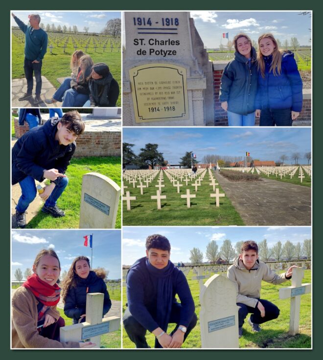L’ Athénée Maerlant (Blankenberge) souhaite la bienvenue au Lycée Jean-Paul de Rocca Serra à Porto Vecchio (Corse). 17/03, net voor de middag. De abituriënten van beide scholen bezoeken samen de Franse soldatenbegraafplaats SAINT CHARLES DE POTYZE (Iepers gehucht).