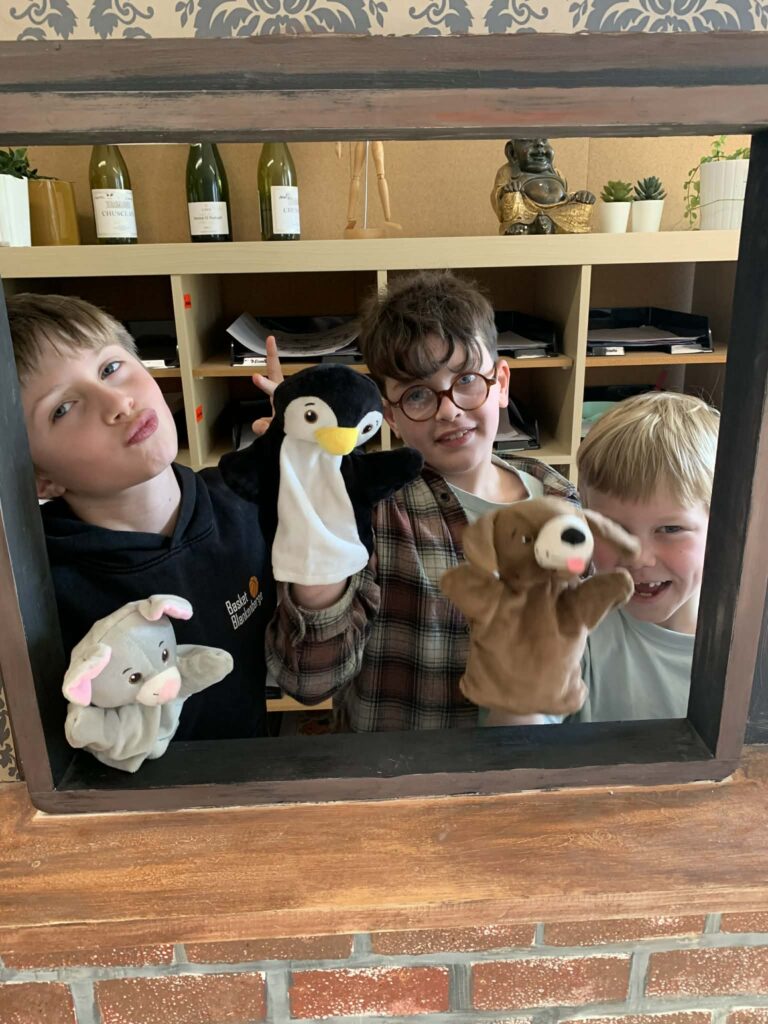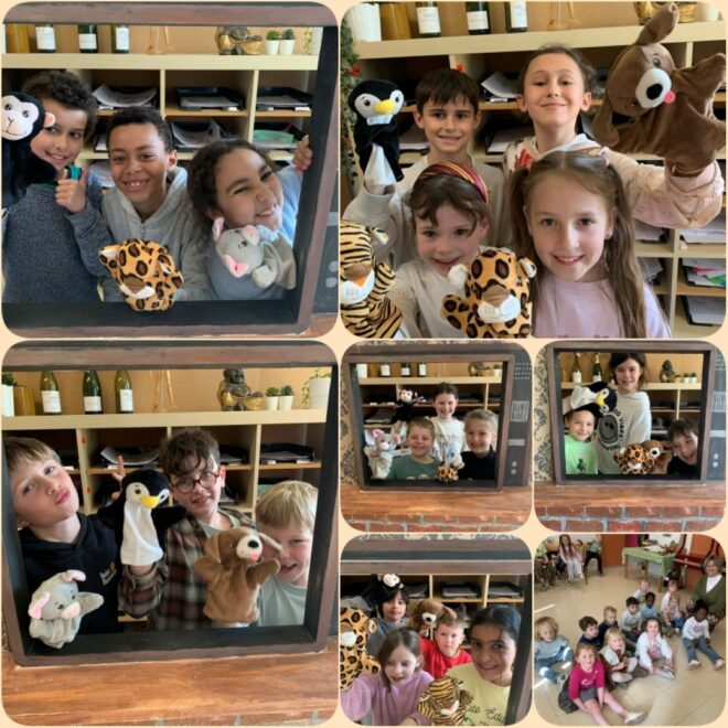 De leerlingen van het 3de leerjaar maakten helemaal zelf een eigen poppenkastverhaaltje. Hun publiek waren de kleuters en de leerlingen van het 1ste leerjaar. Ze genoten er zichtbaar van! Wat een belevenis voor iedereen!
