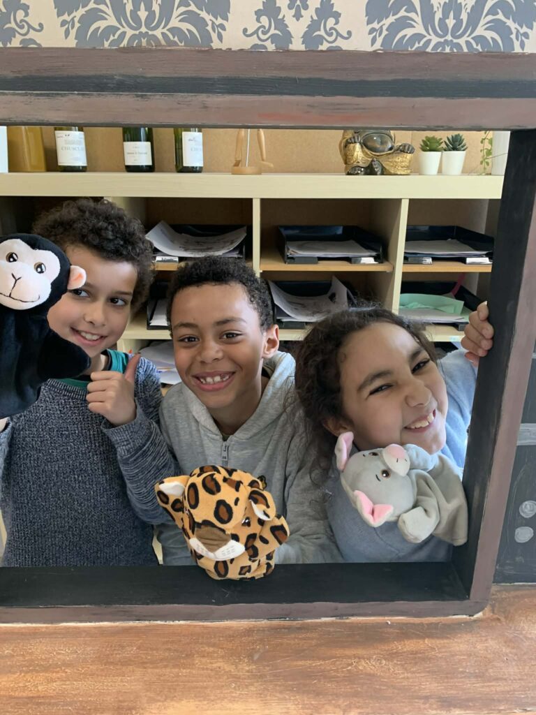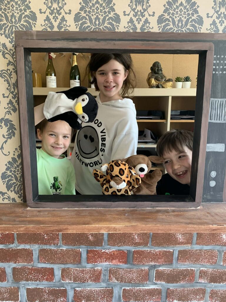 ONS/GROENESTRAAT. Lln. 3de LJ. – hun juf is Sofie Easton – maken eigen POPPENKASTVERHAALTJE…voor kleuters en lln. 1ste lj., die genoten.