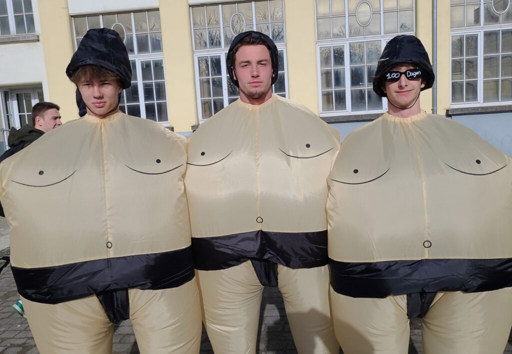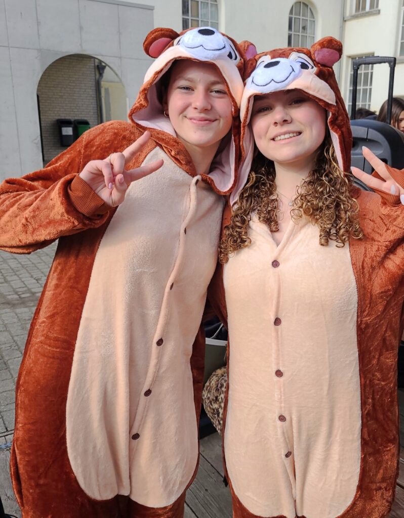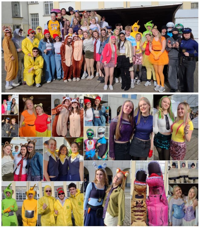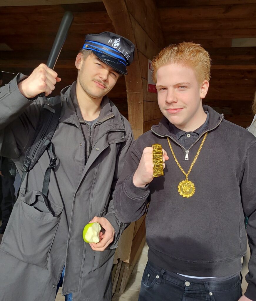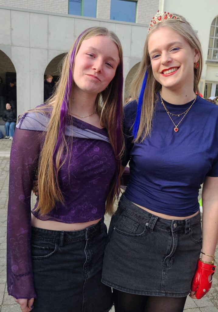 100 DAGEN-VERKLEEDWEEK dag 2, 31maart. De laatstejaarsleerlingen in duo’s of trio’s.