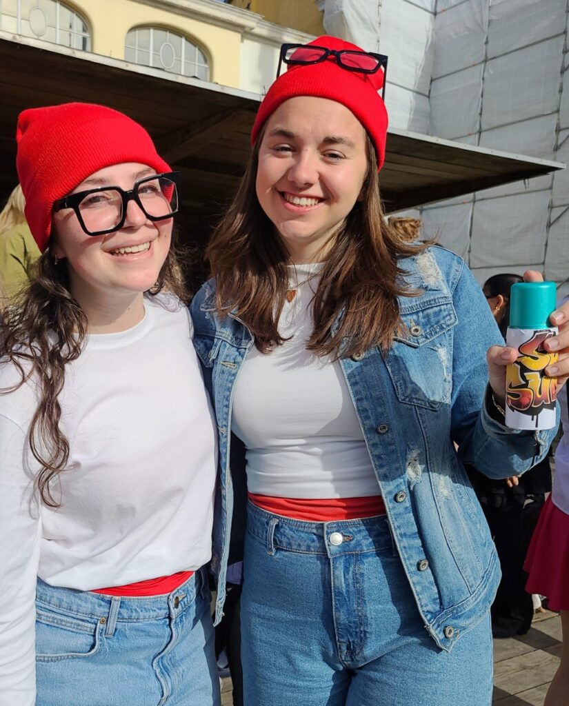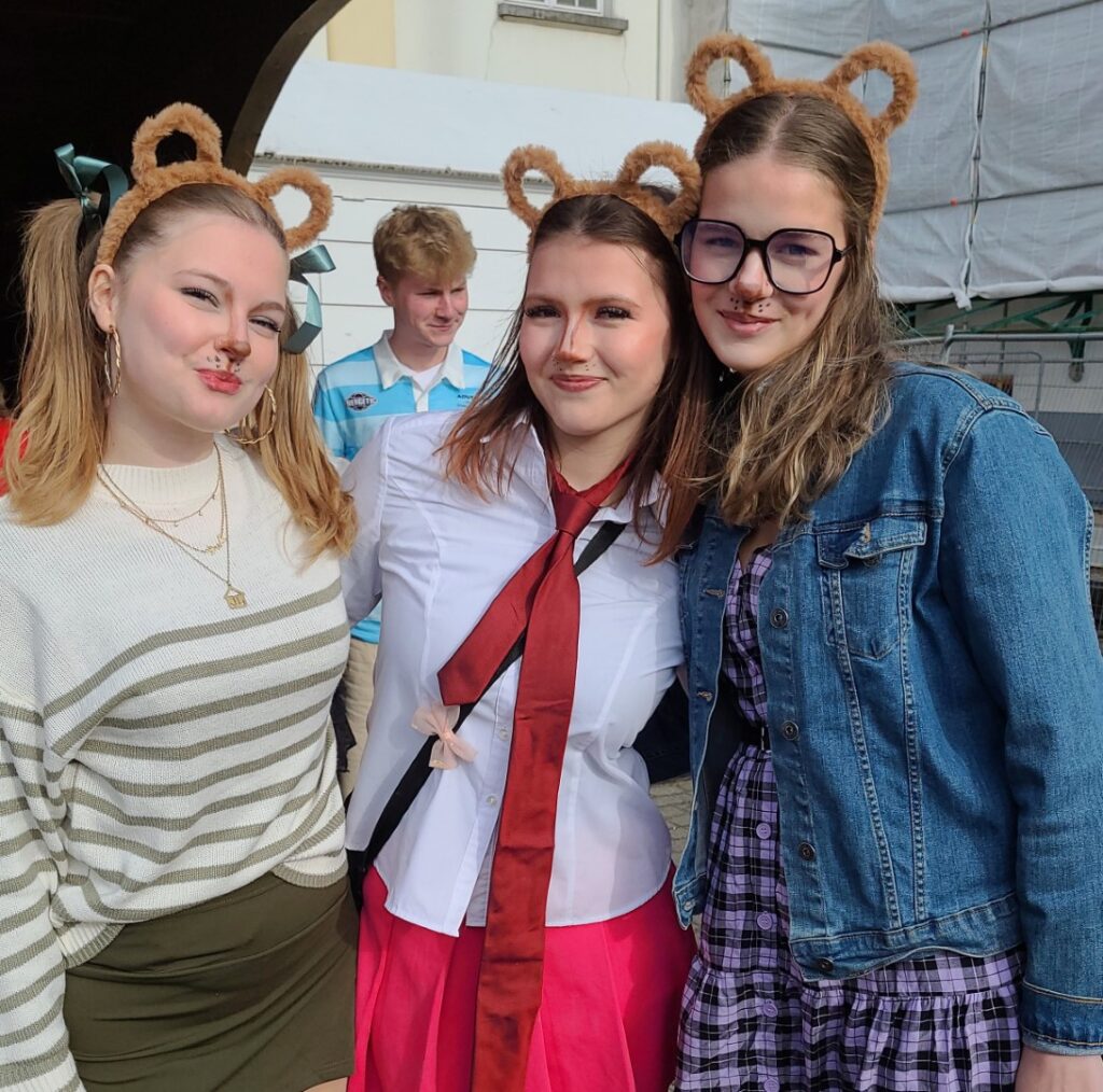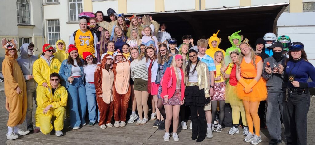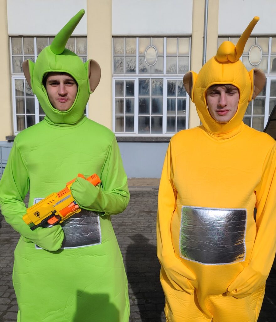 100 DAGEN-VERKLEEDWEEK dag 2, 31maart. De laatstejaarsleerlingen in duo’s of trio’s.