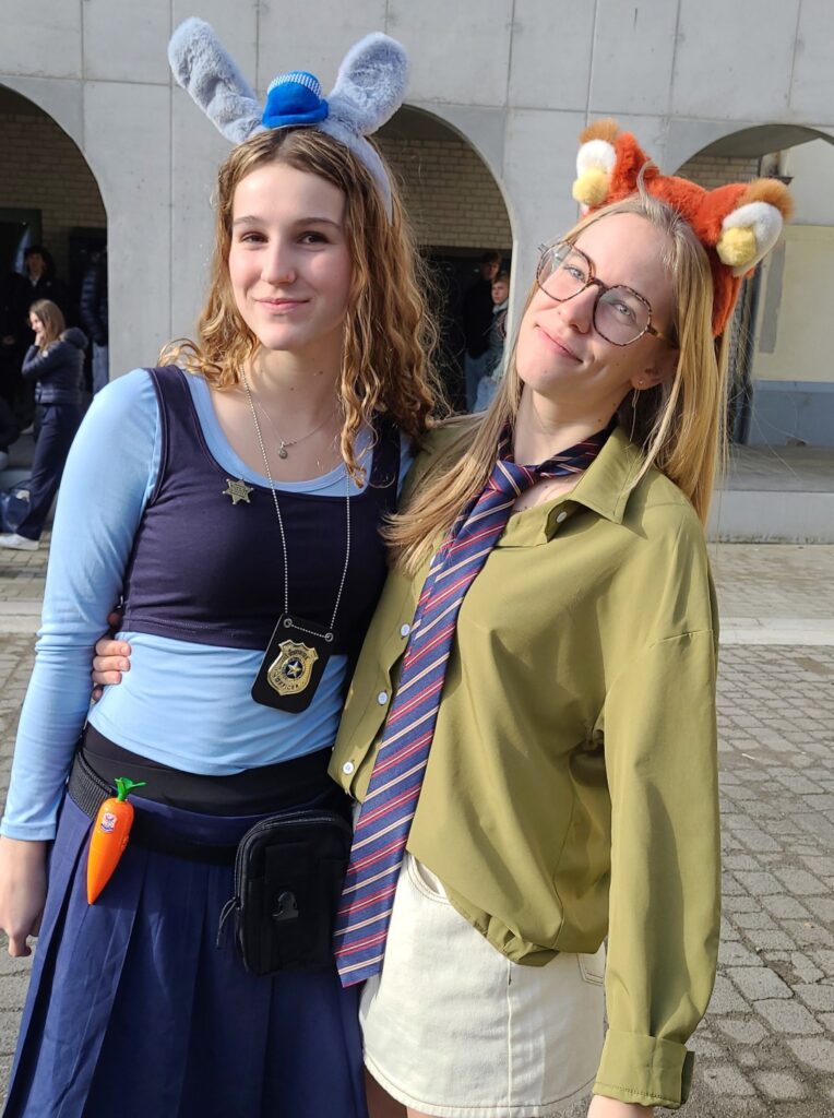 Tijdens de voormiddagpauze op de speelplaats werd duidelijk dat het een speciale dag, een bijzondere week is. De leerlingen van de ZESDES hadden zich getooid, verkleed en vormden bekende duo’s en trio’s.