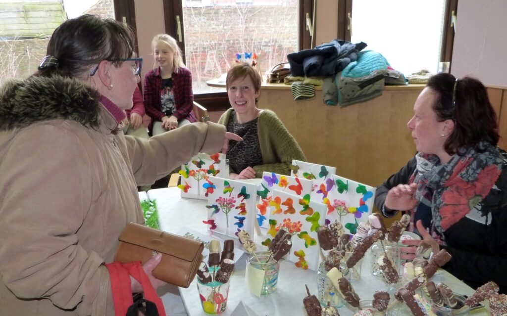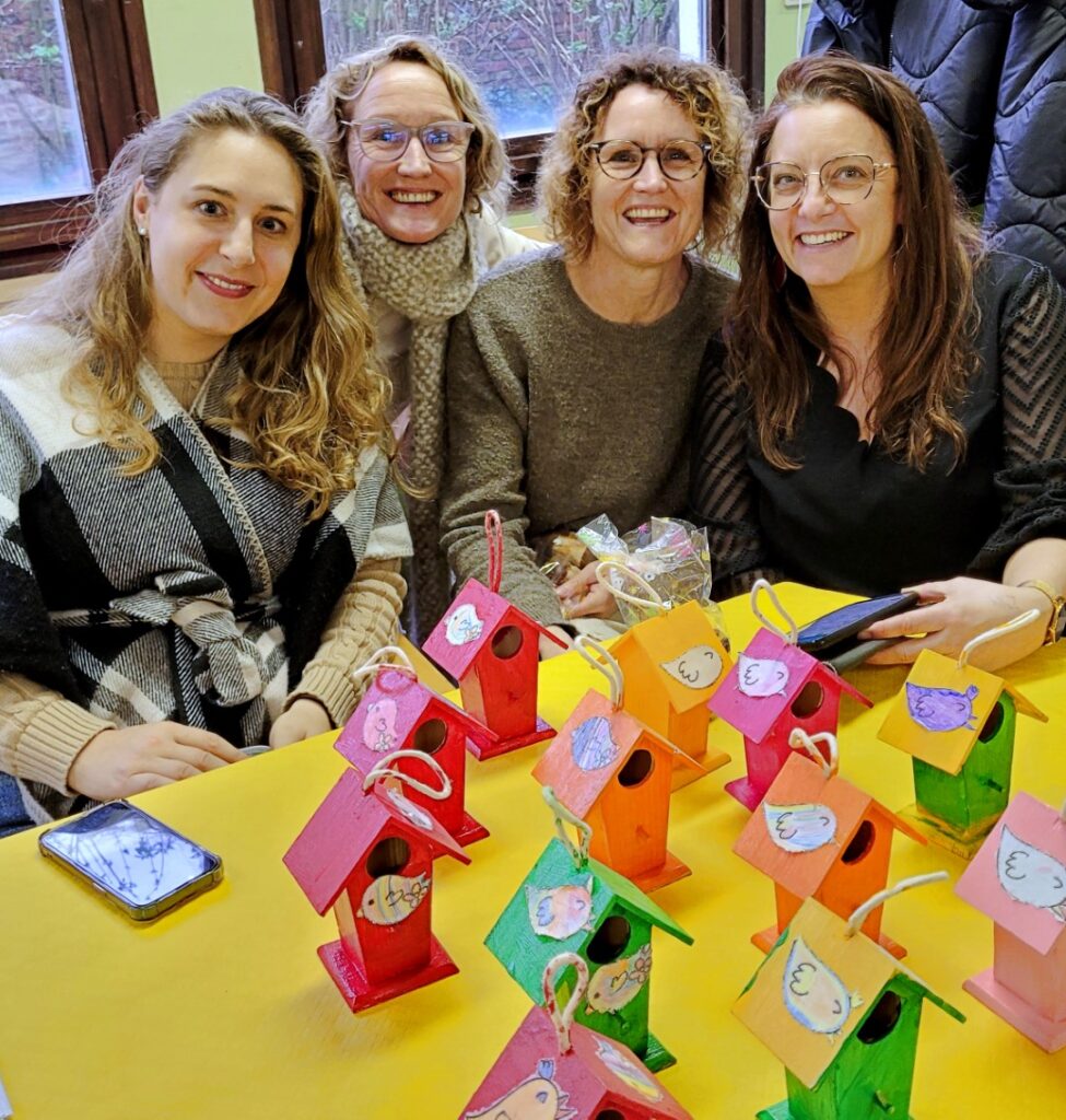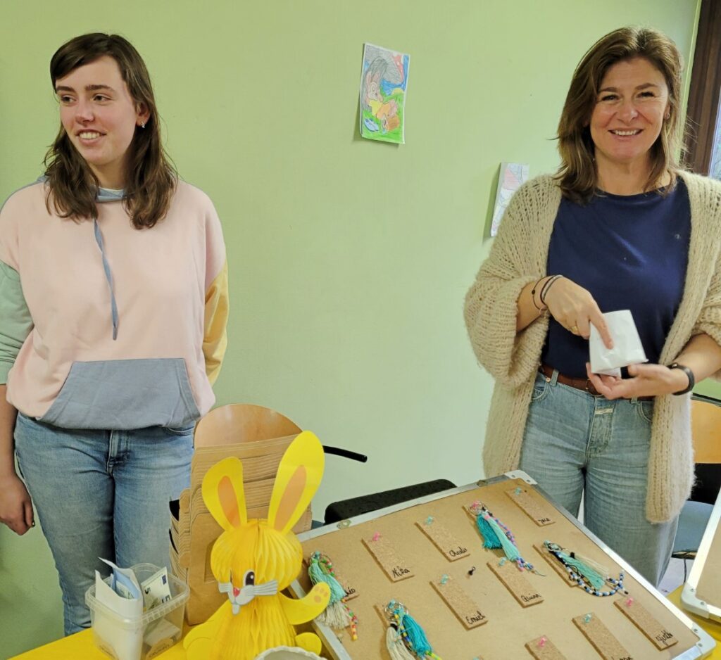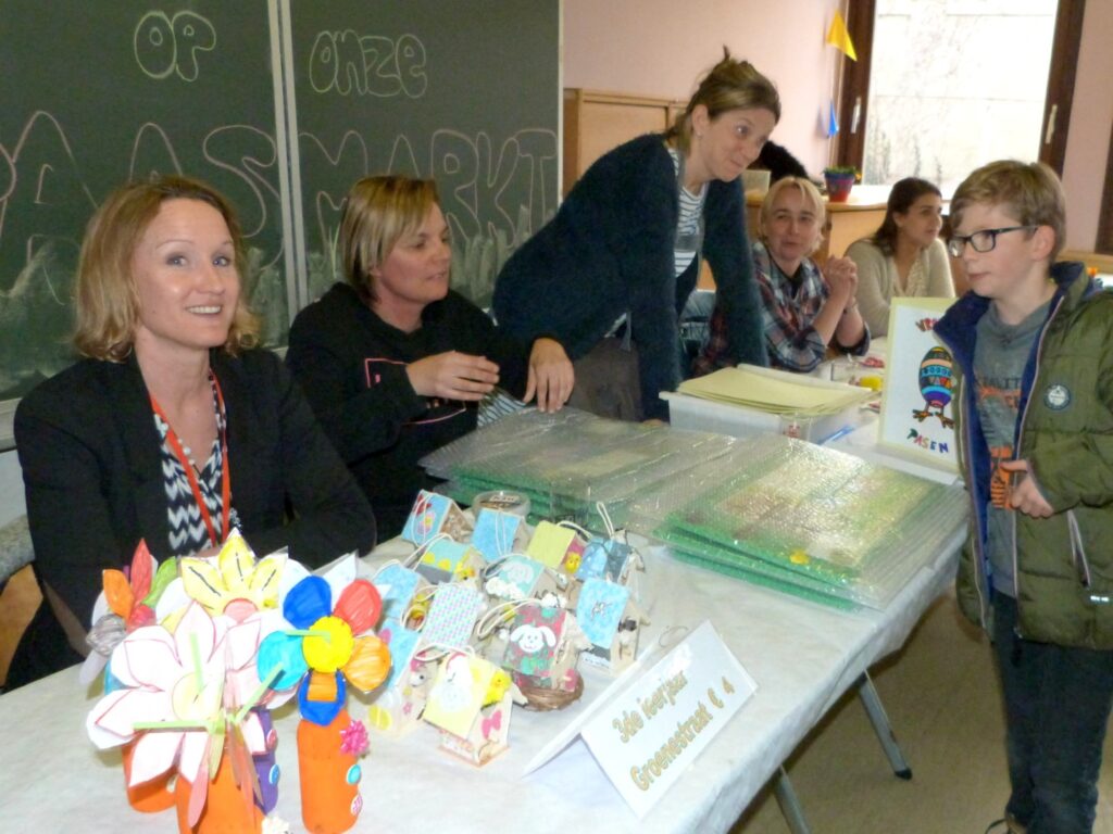 Op de PAASMARKT in locatie UITKERKE kon men allerlei kunstwerkjes kopen, die de leerlingen in de klas hadden gemaakt. Men kon er gezellig een drankje drinken en een praatje slaan. We deden dit met enkele oud-leerlingen, ouders én met oud-leerlingen van het Maerlant-atheneum,, die even hun vroegere juffen kwamen groeten. In 2025 zijn schoollocatie en schoolgebouw verdwenen. We herinneren ons de locatie met heimwee.