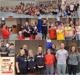 30/03. Begeleid door sportlerares Fien Parmentier organiseerden en presenteerden Paula Steen, Qyluna Branteghem en Katho Van Herck, lln. 6TSP, – hun integrale eindopdracht – een TREFBALMIDDAG in de Sportdoze voor de lln. 6de lj. ONS8/Vredelaan en 1ste j. 1ste gr. Maerlant-atheneum. Er waren een fair-play- winnaar en een wedstrijdwinnaar. En tot slot was er voor elk een Luikse wafel.