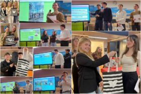 Porto Vecchiaanse en Blankenbergse Maerlant-scholieren presenteerden tijdens de laatste avond samen in ONS/Groenestraat Bl’b een overzicht van de activiteiten van een gezamenlijke week in Westhoek, Mechelen, Breendonk, Brussel EN de Corsicaanse lln. kregen een Blankenberge-tas als geschenk.