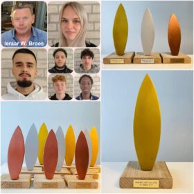 Maerlant-lln. 5 en 6 PO (Preventief Onderoud), begeleid door leraar Wim Broes, creëerden de handgemaakte trofeeën voor de MAERLANT SURF CUP van woensdag 25 maart. Mooi werk!