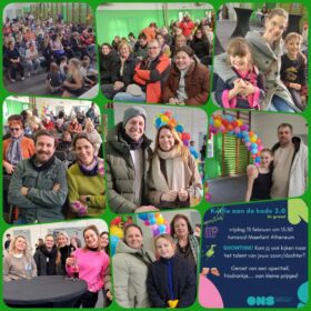 13 feb. ’26. 𝐀PERITIEF AAN DE KADE in gymzaal Maerlant-ath. ONS/Vredelaan 5de en 6de lj. Vrij podium – show: dans, toneel, zang e.a + voor ouders en gasten napraten bij een drankje. Deel 2: presentatoren, organisatoren