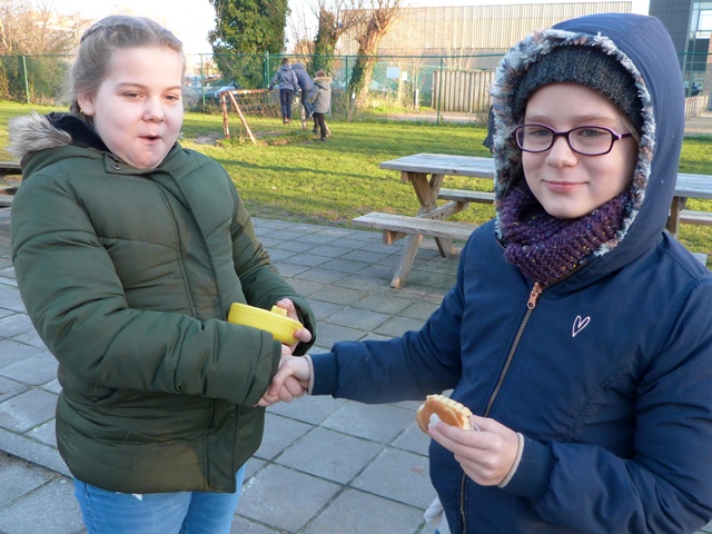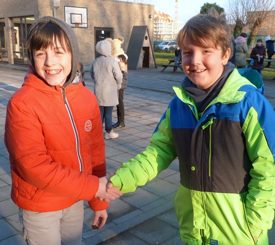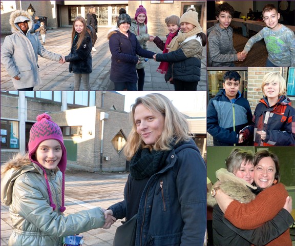 Het is winter, maar niet echt winters en naar school komen valt niet zwaar. Velen zijn zelfs blij elkaar terug te zien na de feestdagen en de kerstvakantie. Ze wensen elkaar graag GELUK.