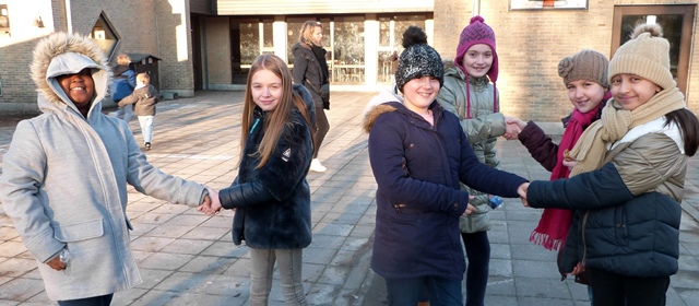 GELUKKIG NIEUWJAAR WENSEN LEERLINGEN EN PERSONEELSLEDEN VAN DE ZILVERMEEUW-BASISSCHOOL (GROENESTR.). ELKAAR OP 6 JAN. , DE EERSTE SCHOOLDAG IN 2020. ZINGEN ZE ‘WAT EEN GELUK DAT IK EEN STUKJE VAN DE WERELD BEN’?