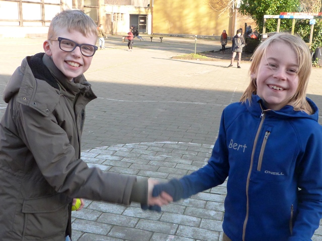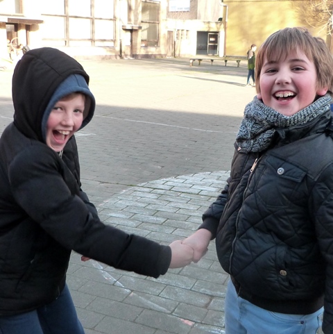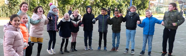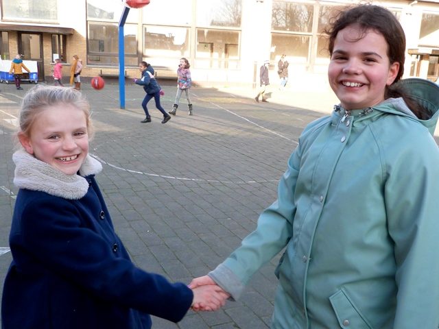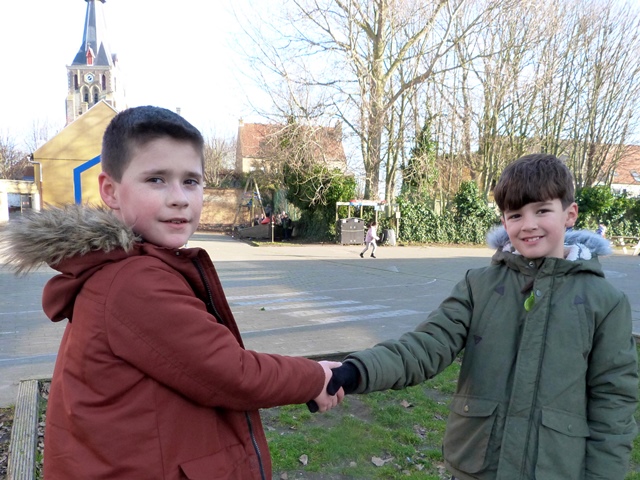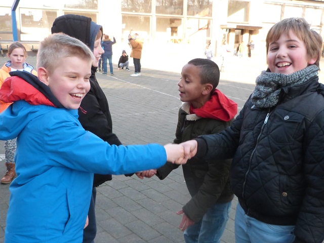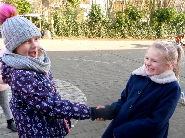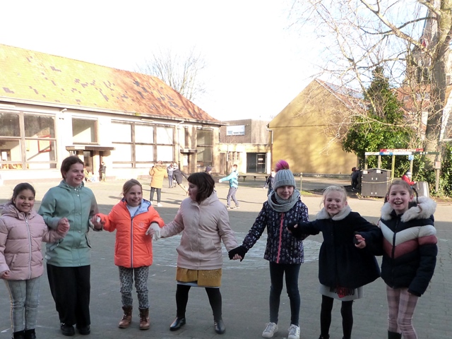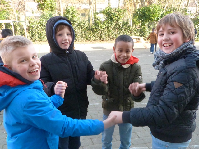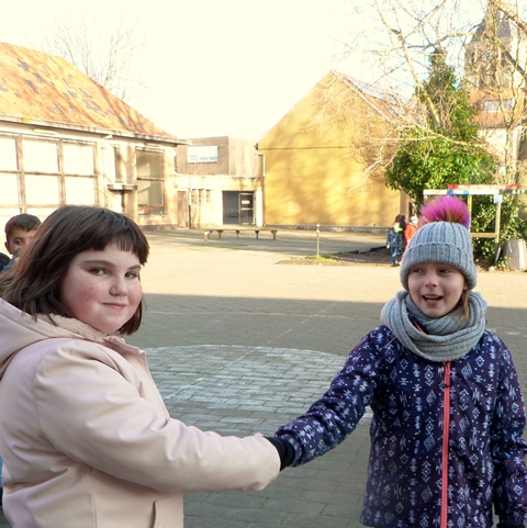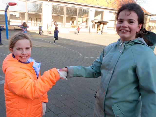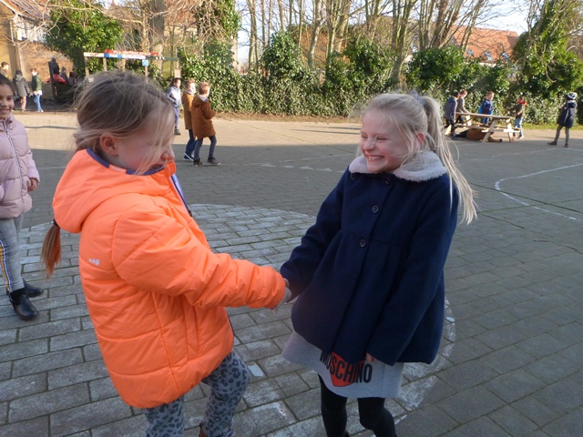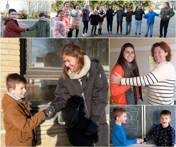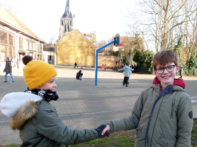 Het is winter, maar niet echt winters en naar school komen valt niet zwaar. Velen zijn zelfs blij elkaar terug te zien na de feestdagen en de kerstvakantie. Ze wensen elkaar graag GELUK.