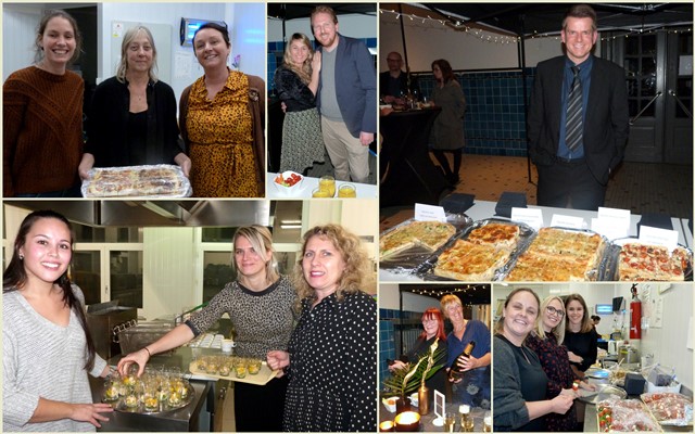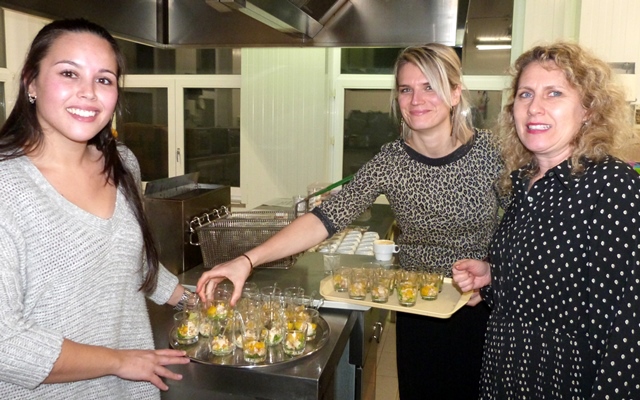 Voor de hapjes zorgden de vier leraressen huishoudkunde Cathy Lagast, Sabine Vervaele, Julie Folens,  Marita Bloemen EN TAL VAN PERSONEELSLEDEN VAN DE ORGANISERENDE D4Oefenschool