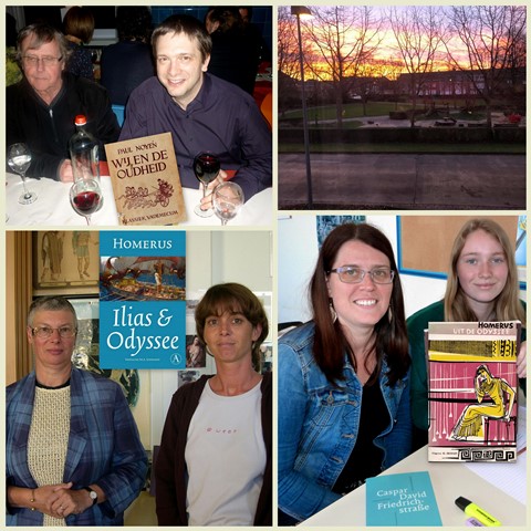 Toen nu de in den morgenstond geboren, rozenvingrige Eos verscheen, toen zond ik enige makkers uit naar de woning van Circe om het lijk van de gestorven Elpenor te halen. Haastig hakten wij brandhout en vierden, (daar) waar de kust het hoogst vooruitstak, bitter bedroefd en een stroom van tranen vergietend, zijn´ uitvaart….