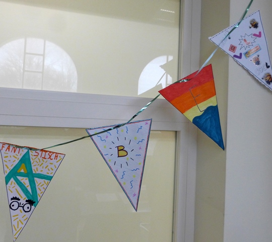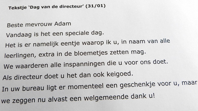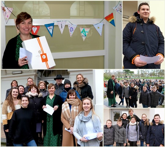 De leerlingenraad (met de leerkrachten SaraH Huygens en Sharon Deserranno) organiseerde. De leden van de raad hadden vlaggetjes aan elkaar geregen met de letters uit het woord FORMIDABLE, ze hadden de slinger in het bureau van de directrice opgehangen zonder haar medeweten.