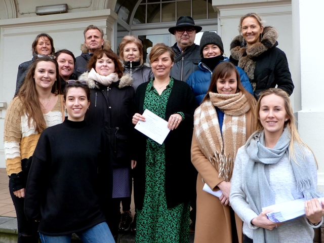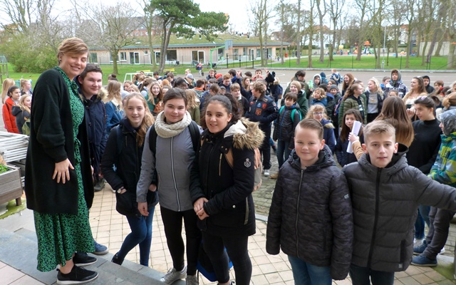 Op 31 jan. stonden alle leerlingen van de 1ste graad van het Maerlant-atheneum op de speelplaats klaar om hulde te brengen aan Shirley Adam, hun directrice.