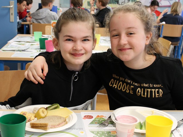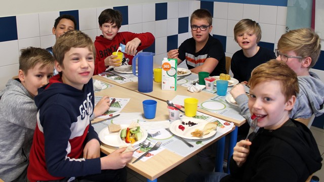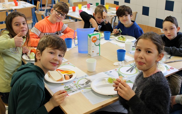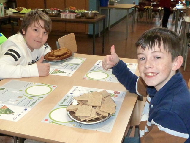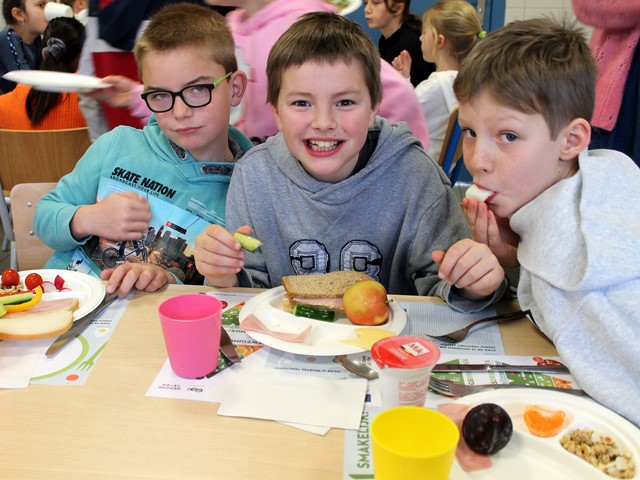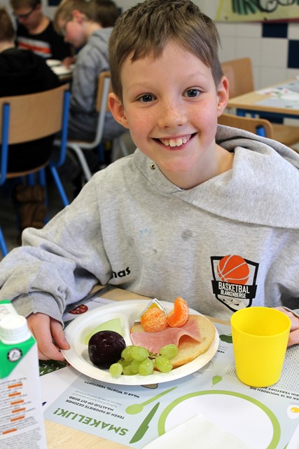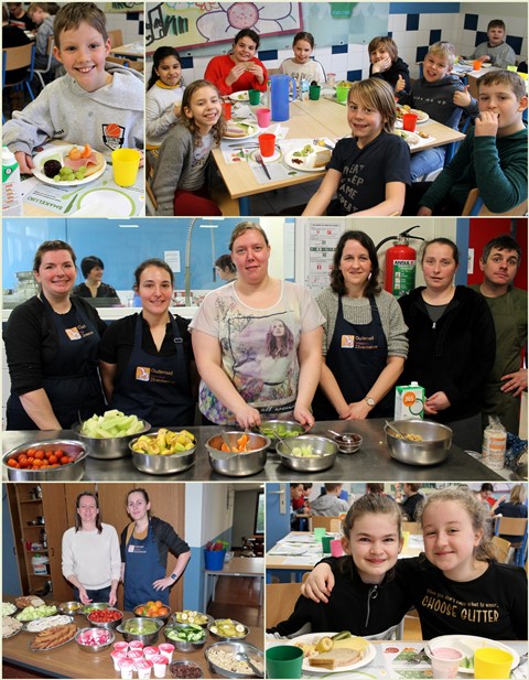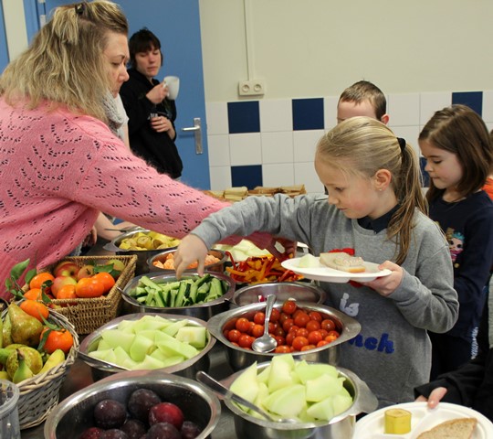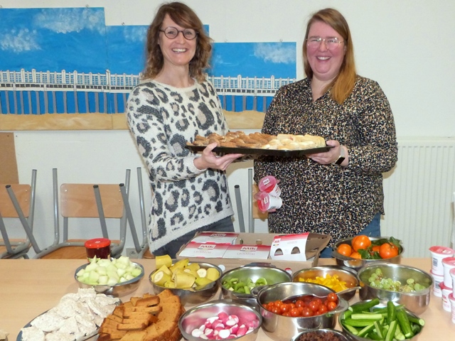 Dit ontbijt paste in het schoolproject “Wat als superhelden geen fastfood lusten”. De leerlingenraad zorgde eerst voor wat beweging tijdens de ochtendgymnastiek. Daarna smulde iedereen van de heerlijke groenten en fruit, de variatie aan brood en crackers, eitjes, rozijntjes,…