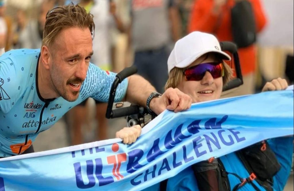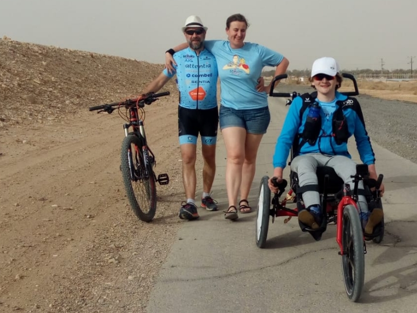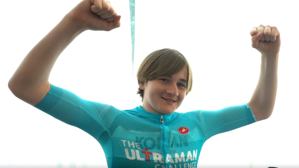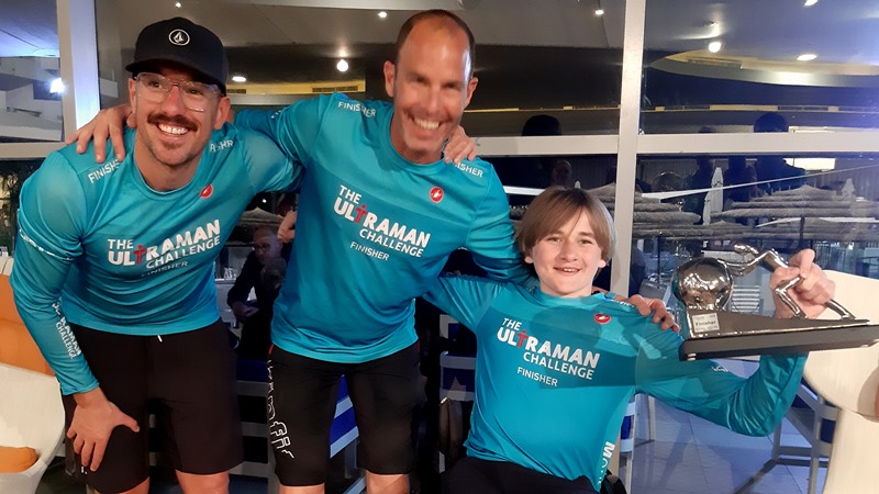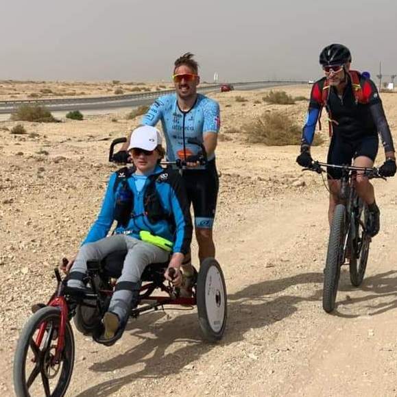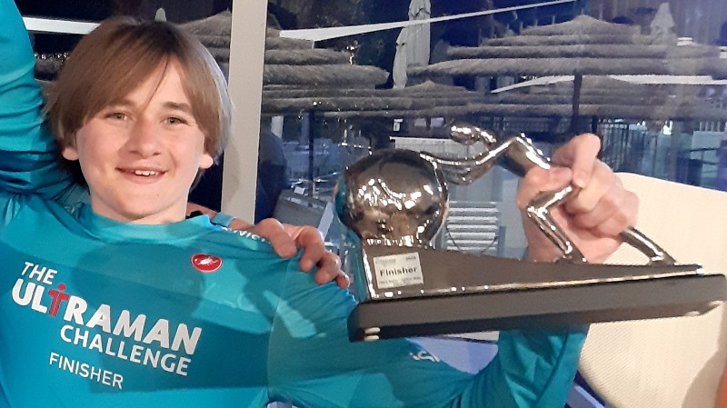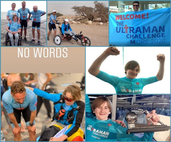 JOHANNES BALBAERT, leerling 1A Maerlant-atheneum, voltooide in Israël de Ultraman Challenge samen met triatleet Nico De Neef (en met zijn ouders Jürgen Balbaert en Astrid Van Keer niet veraf)