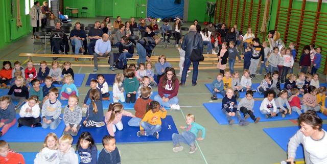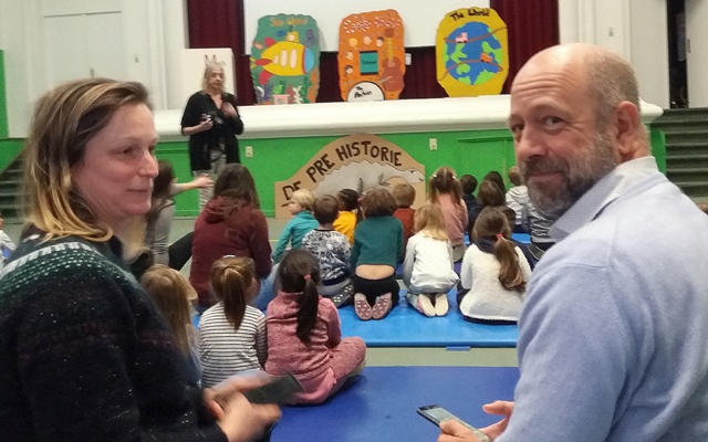 Elk om beurt namen ze de microfoon in de hand, elk om beurt leidden ze de kleuters naar de scène.