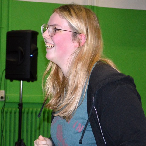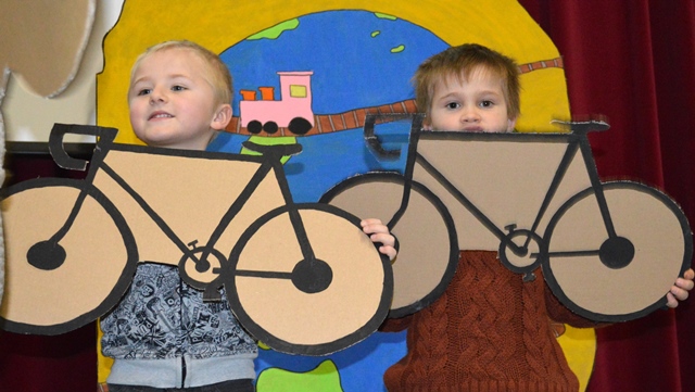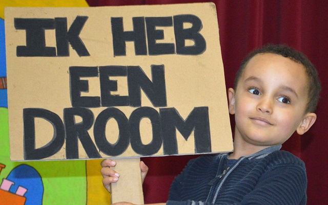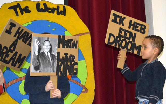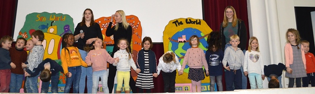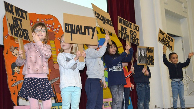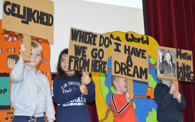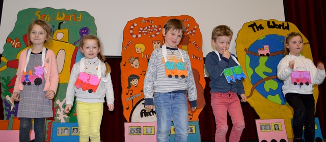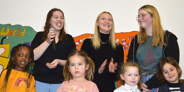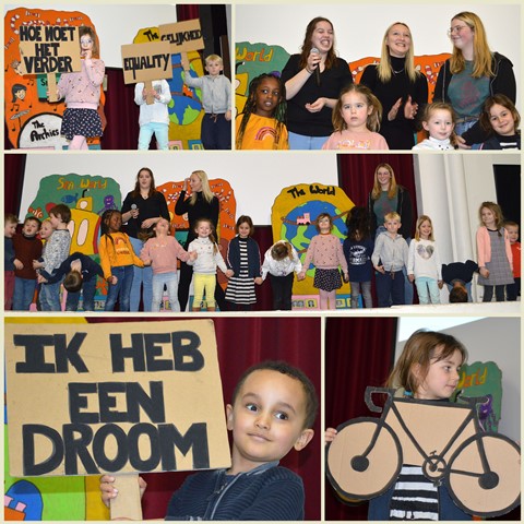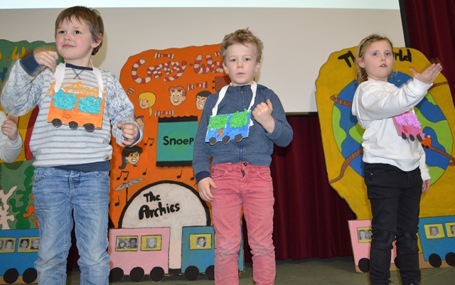Elk om beurt namen ze de microfoon in de hand, elk om beurt leidden ze de kleuters naar de scène.