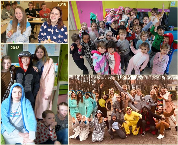 BEDNET (zorgt ervoor dat langdurig of chronisch zieke kinderen van thuis uit gewoon mee in de klas zitten) en KETNET riepen op om die dag kinderen in pyjama naar school te laten komen. Op die manier steunt men zieke kinderen die voor een lange tijd niet naar school kunnen gaan.