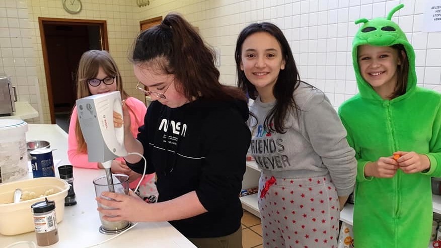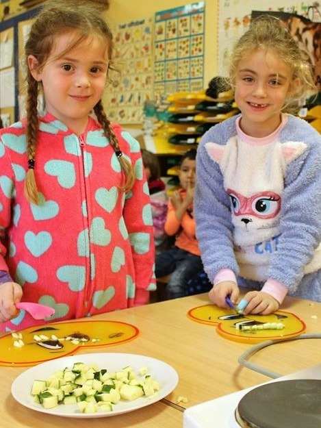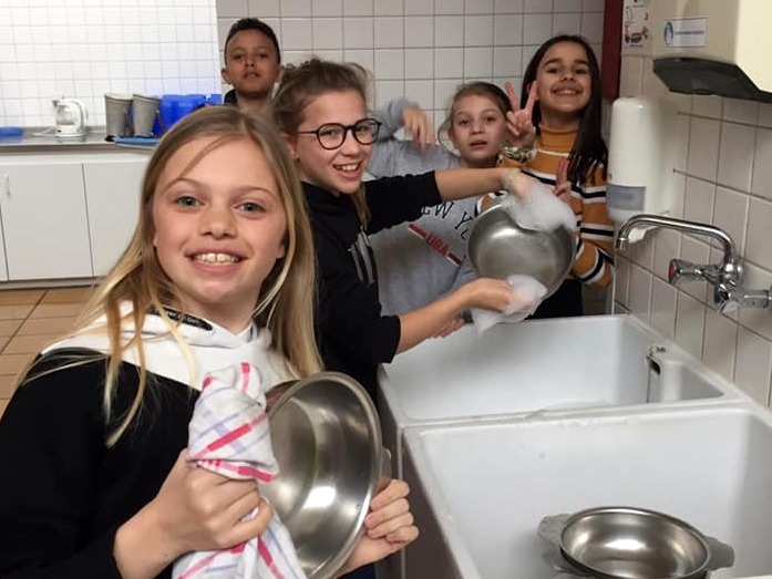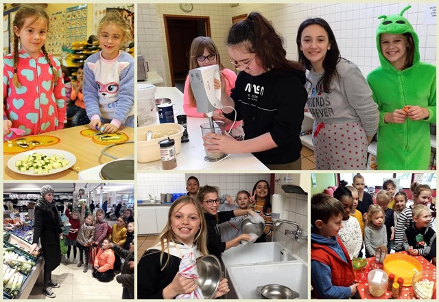 Juf Sofie Easton schrijft me: “Tijdens deze (Steam)week was er om de dag fit te starten een beweegmoment, georganiseerd door de leerlingenraad. Er werd ook klassikaal boodschappen gedaan om soep te maken, er werden bananenpannenkoeken gebakken, gezonde wraps gemaakt, fruitsalade, wortelfrietjes, gezonde drankjes, gezonde popcorn,…er werd dus veel gesmuld!