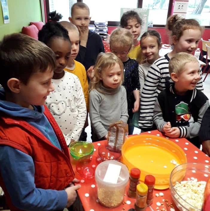 Er werden ook proefjes gedaan met kleurstoffen in voeding. Ook een heuse poppenkast, gebracht door lagere schoolleerlingen voor kleuters. De hoofdrolspelers in deze poppenkast waren de superhelden zelf!”