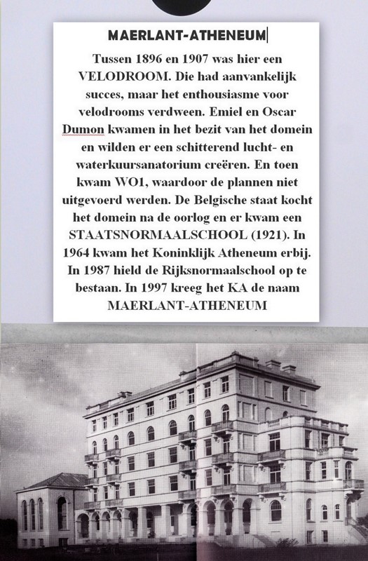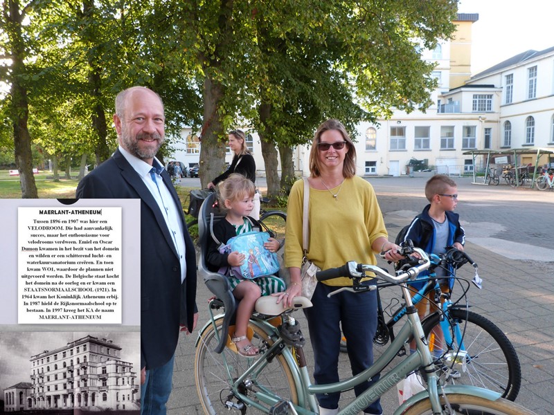 De infozuil had in de De Smet de Naeyerlaan kunnen staan, waar de statige hoofdingang van de school was, waar econoom en directeur woonden,