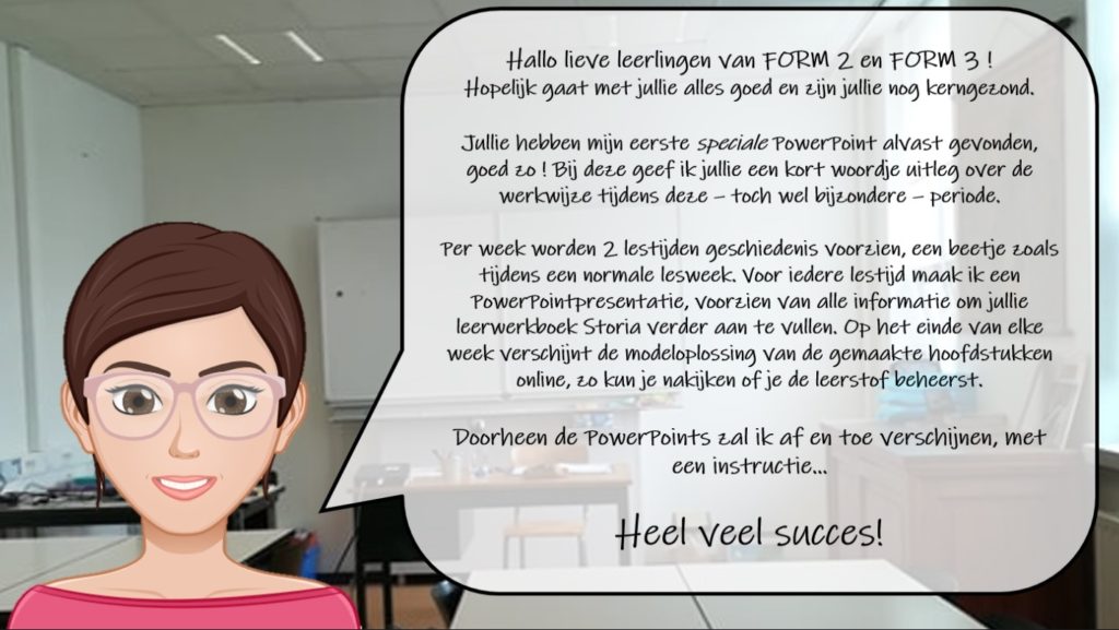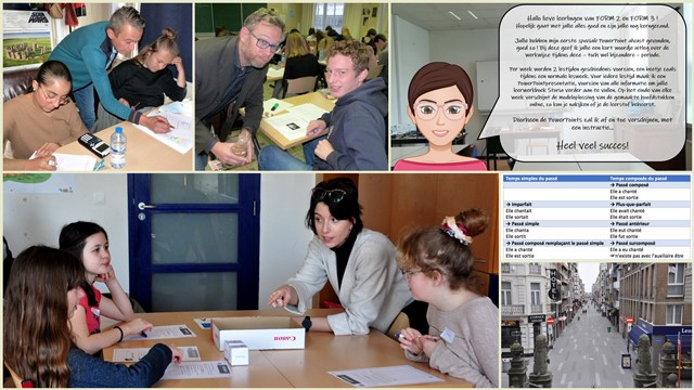 Eva Barbiaux, lerares Frans, geschiedenis, handel, mavo en Go for it 1ste gr. heeft met al die vakken (vijf!) uiteraard veel werk gehad om al die lessen in een nieuwe vorm te gieten, attractief om naar te kijken en om te leren…power ponts, educatieve filmpjes…