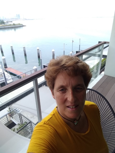 vanop haar ‘buitenverblijf’, haar terras, haar balkon in Penang