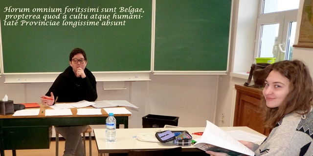 k heb tijdens het weekend per klas een bundel opdrachten gemaakt , de opdracht is een Latijnse tekst vertalen, waar ik heel veel uitleg geef over de zinsdelen, functies en vertaaltechnieken. Donderdag dienen ze een eerste versie in, die ik dan verbeter. Volgende week gaan we LIVE om de tekst klassikaal te vertalen;